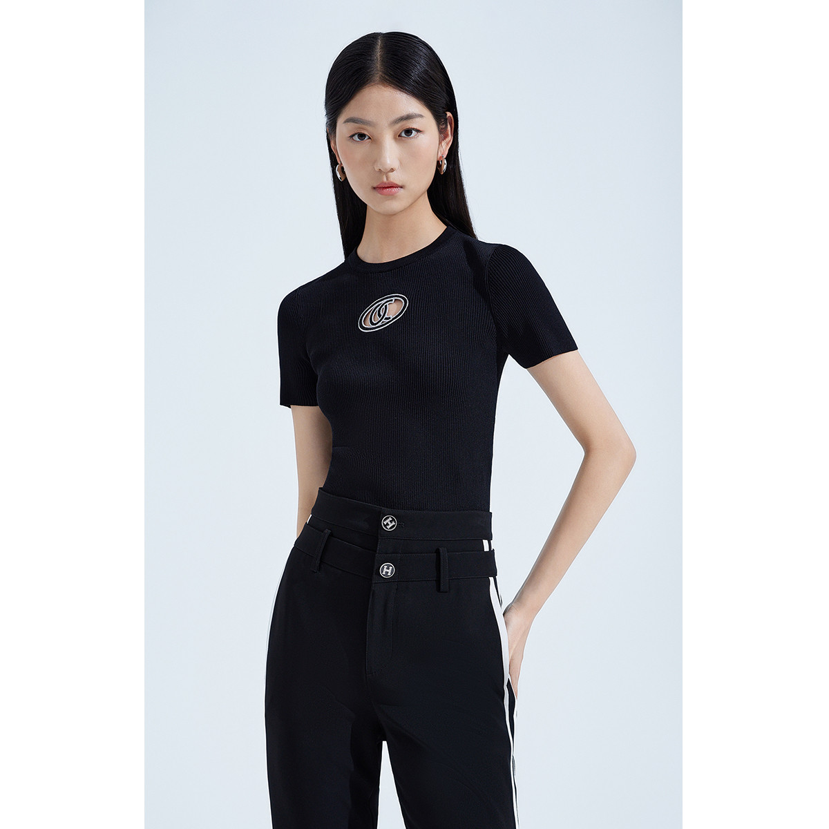 夏装 logo镂空百搭修身短袖针织衫女 728015