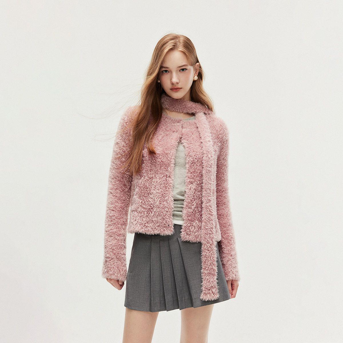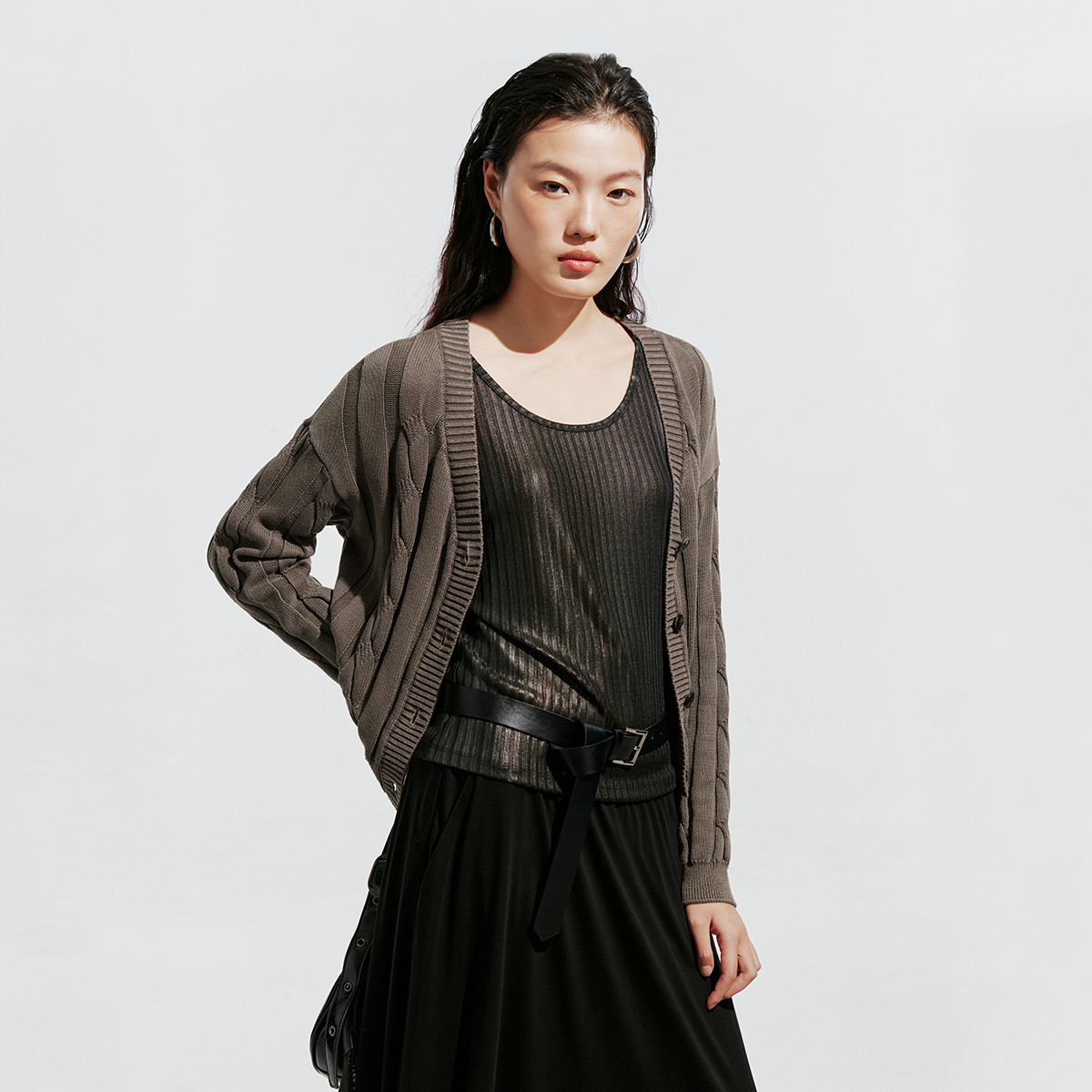 【纯色开衫】针织衫女开衫长袖坑条简约格雷灰韩系 195473