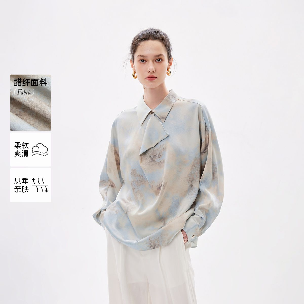 【宽松落肩】春季垂感落肩袖长袖雪纺衫女 078746