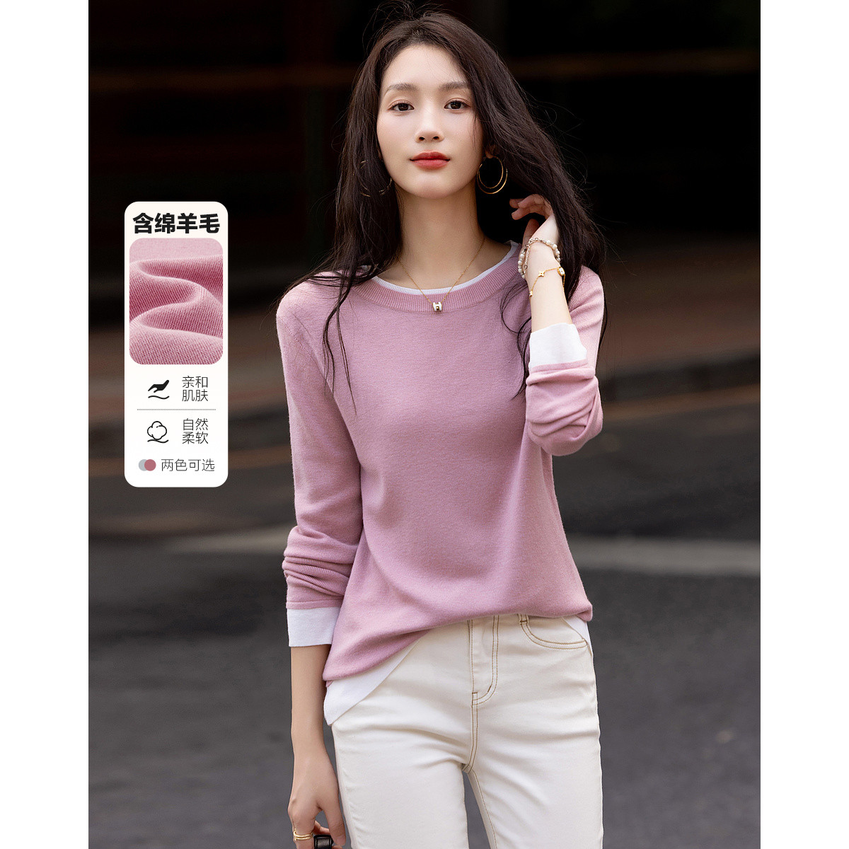 【2024秋冬季】时尚撞色拼接圆领套头毛衣女气质减龄针织衫 138580