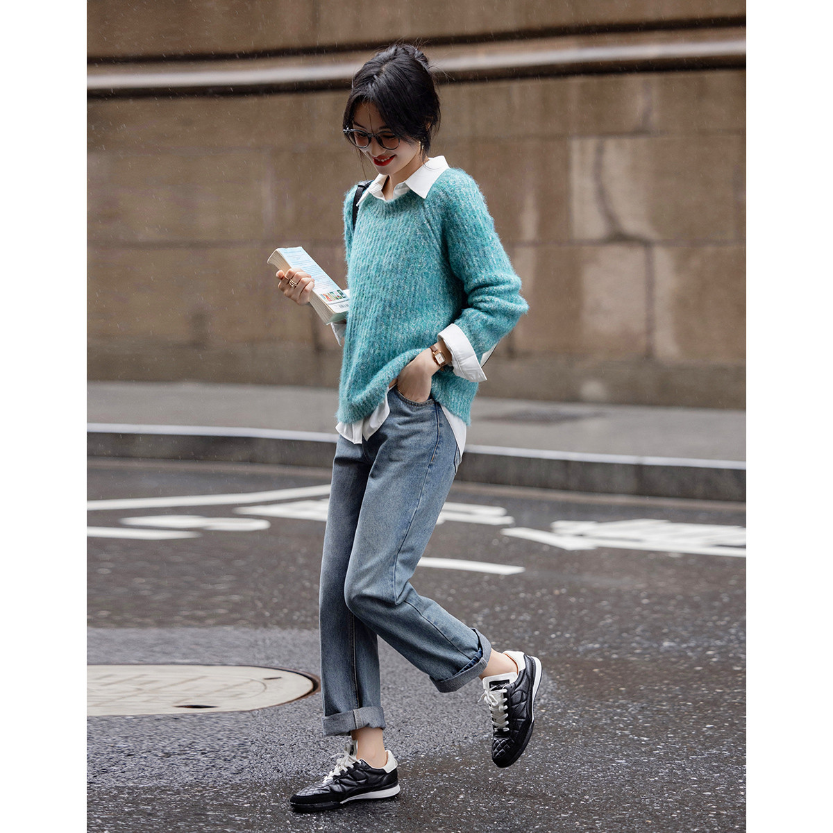 【胶囊衣橱系列】春秋纸片人V领线衫慵懒藏肉松弛感针织衫女上衣 620673