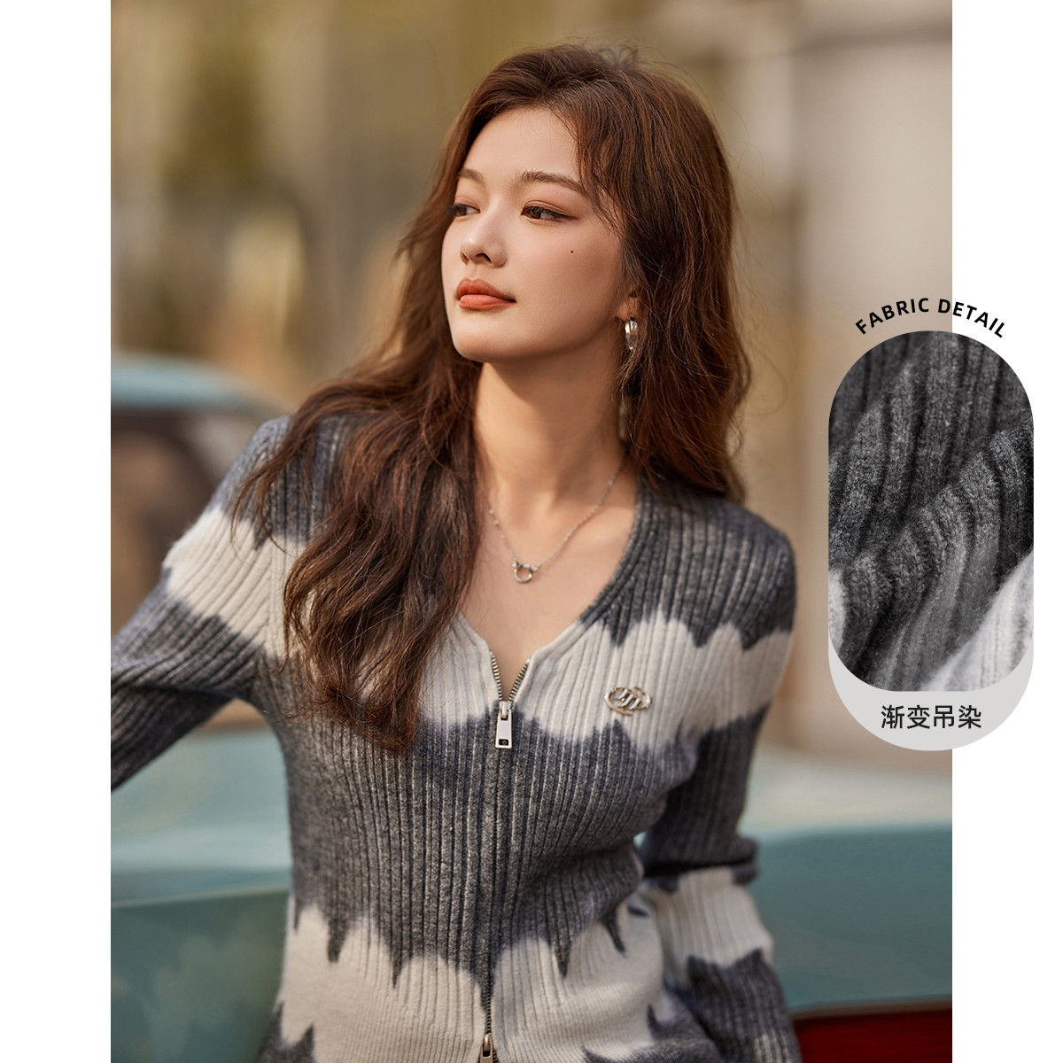 【都市漫游】秋冬吊染高级感渐变毛衣开衫女显瘦V领洋气针织衫女 689537
