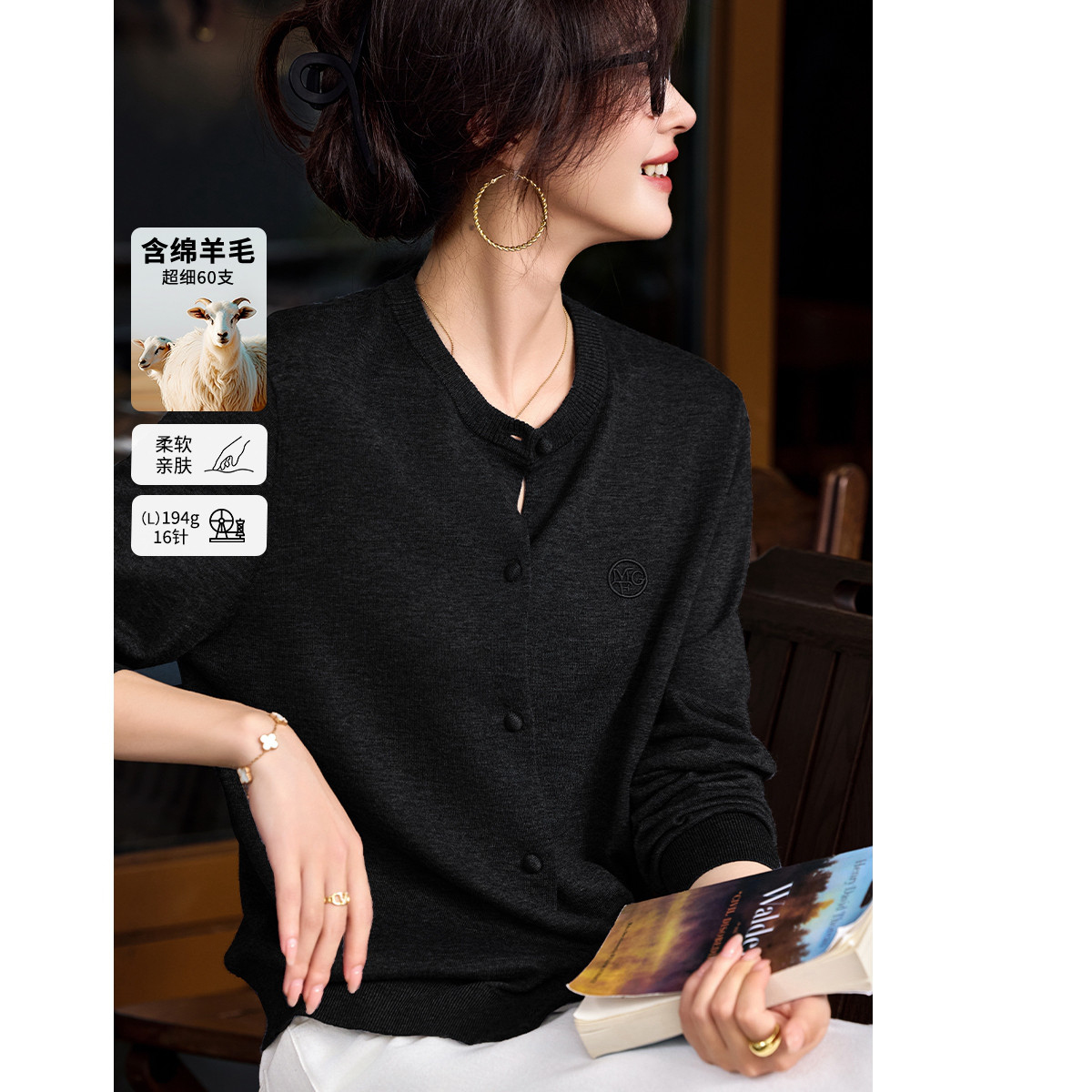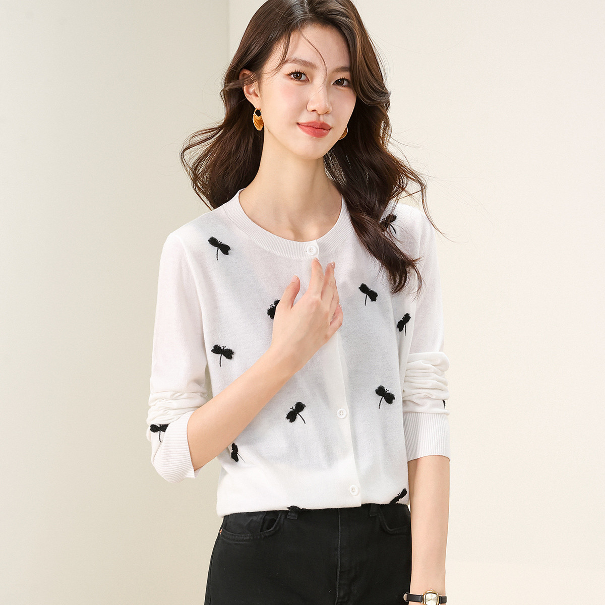 圆领针织衫含羊毛针织打底开衫小蜻蜓毛衣外套小衫 535379