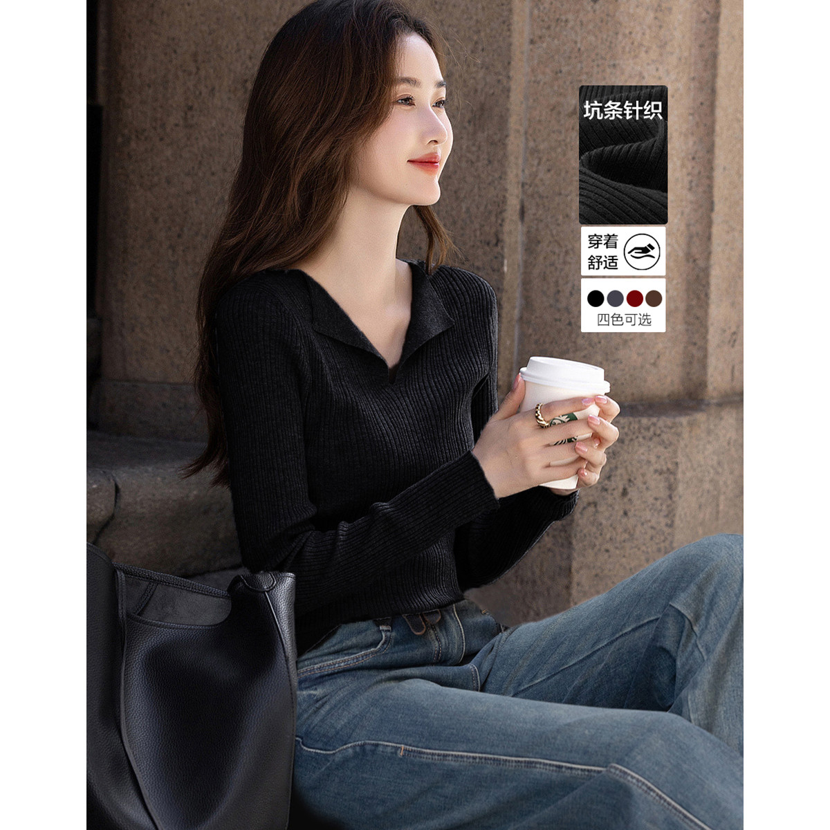 【坑条针织】修身短款套头简约通勤打底针织衫女 165457