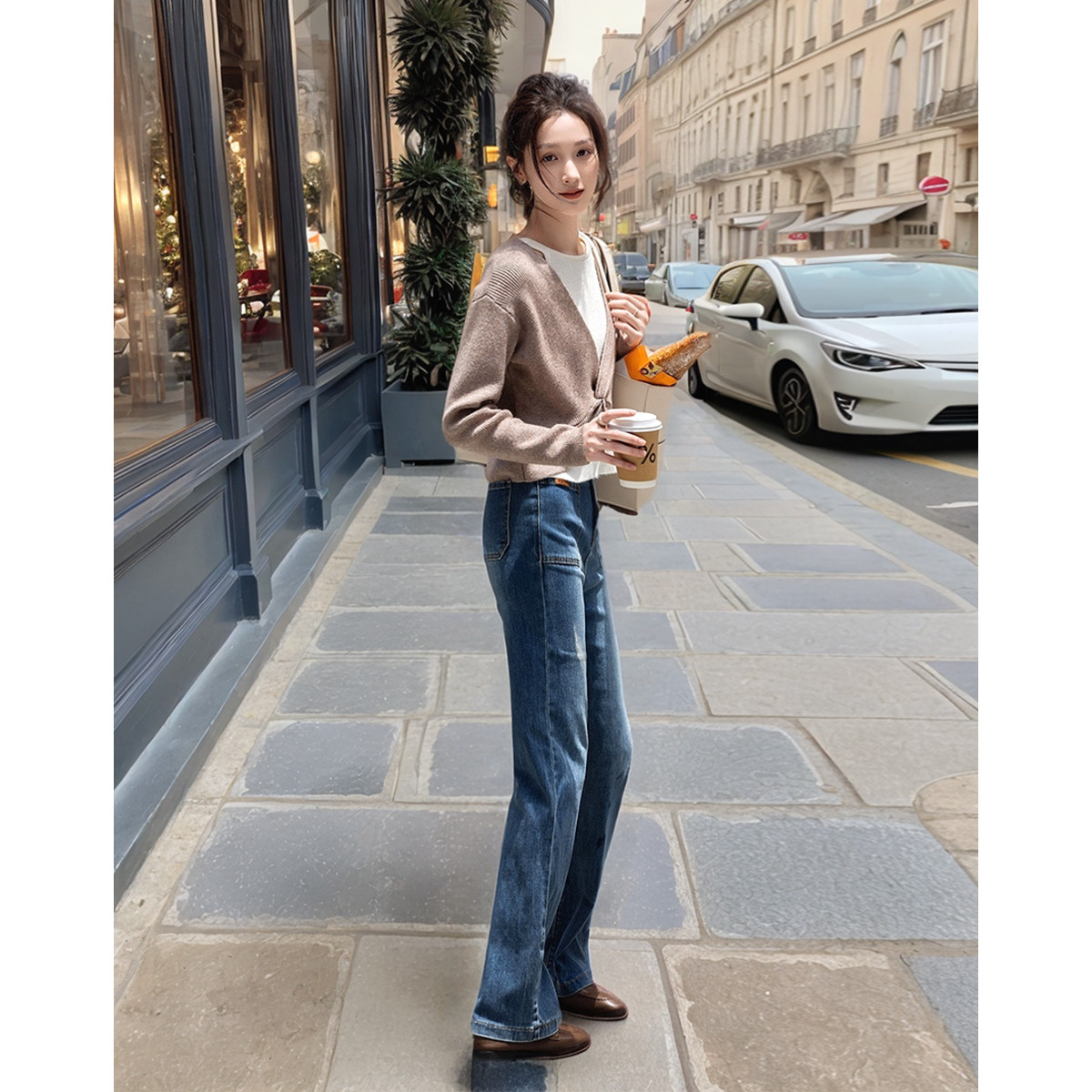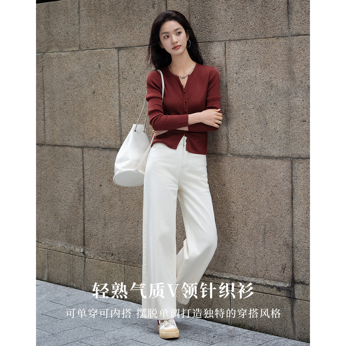 【高智感老钱】秋季V领线衫舒适遮肉上衣好搭针织衫套装两件套 584129
