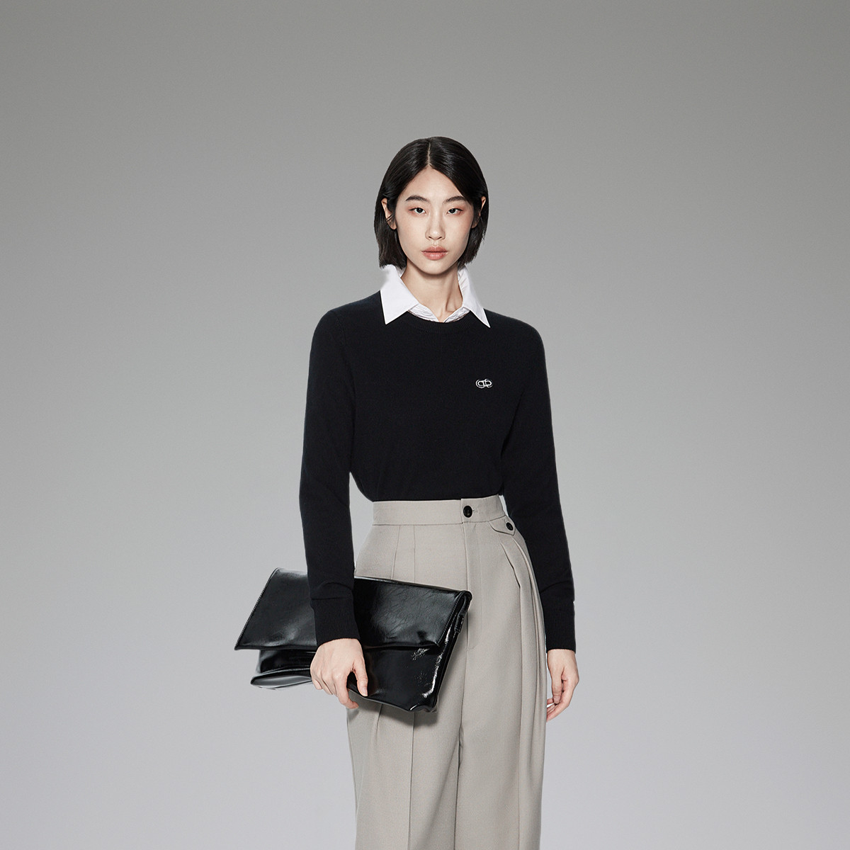 春装100%山羊绒软糯上衣打底毛衣女 433423