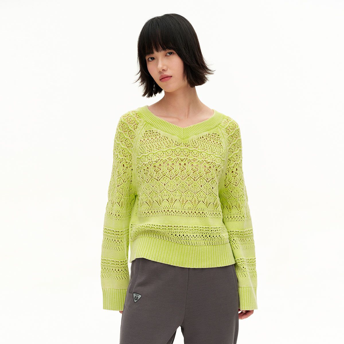 【编织系灵感】秋温润镂空V领线衫泡泡袖松弛藏肉针织衫女上衣 873601