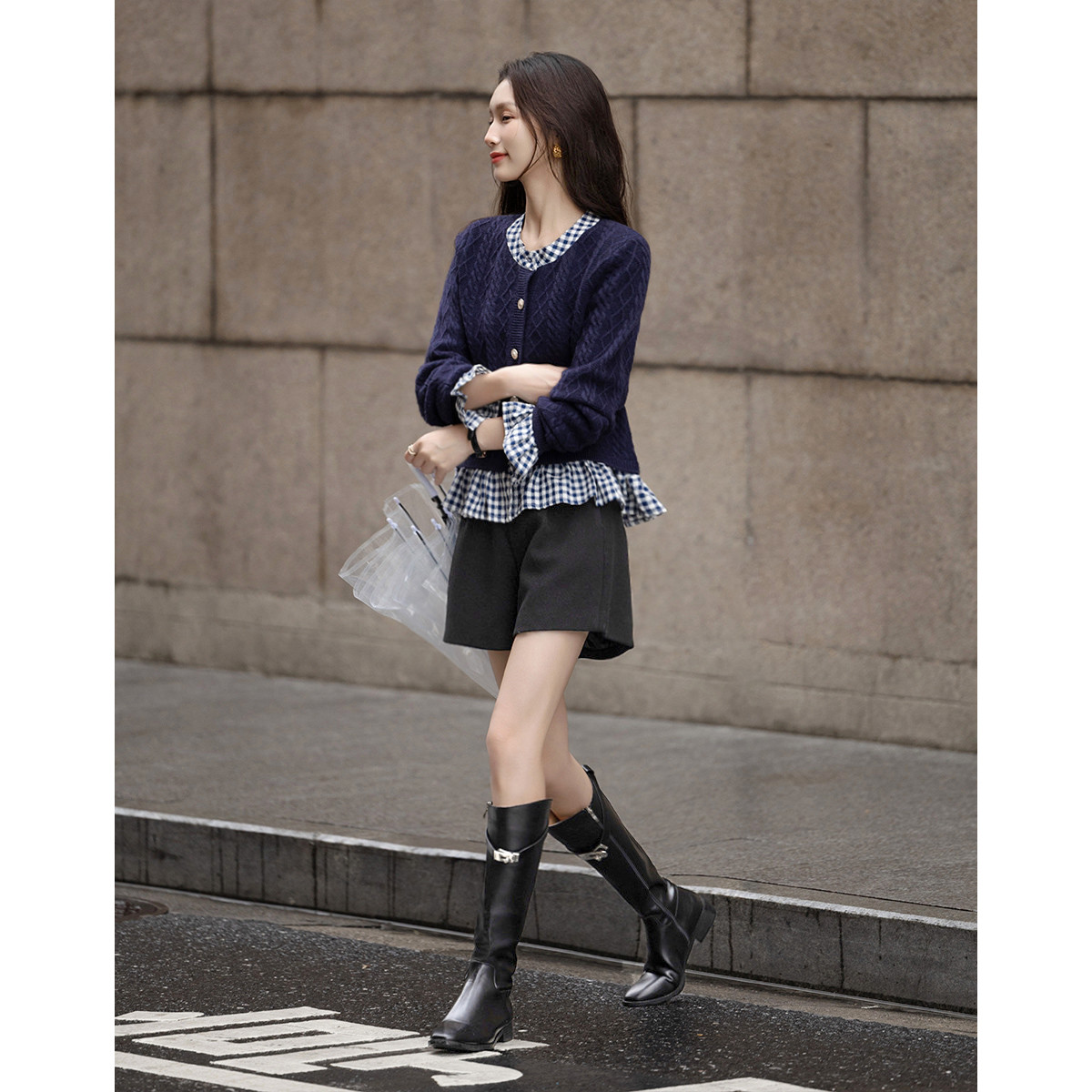 【小城故事】秋轻龄感假两件舒柔纤绒纱线衫立领荷叶边针织衫 299585