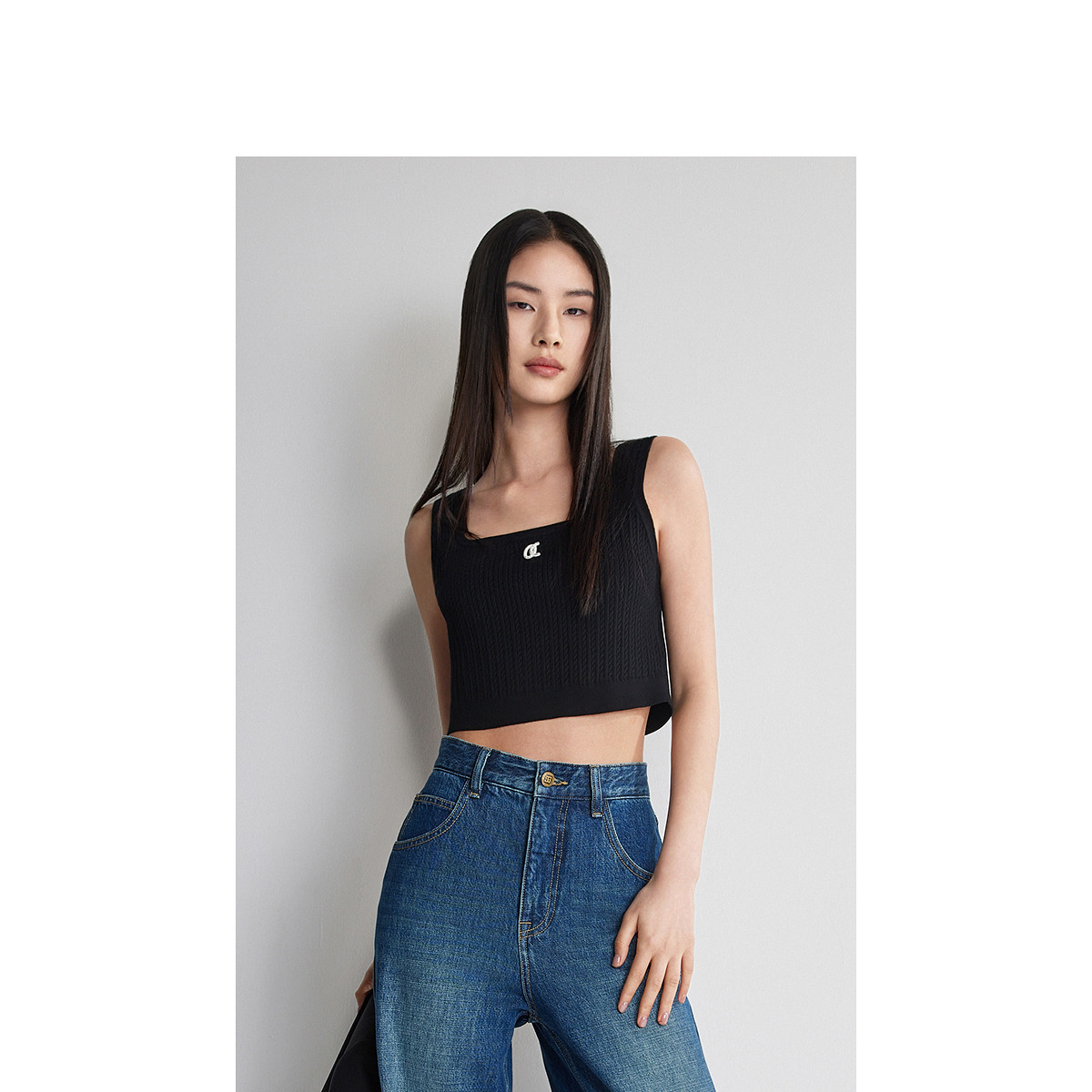 【商场同款】春装 短款方领针织背心女弹力上衣打底修身 407759