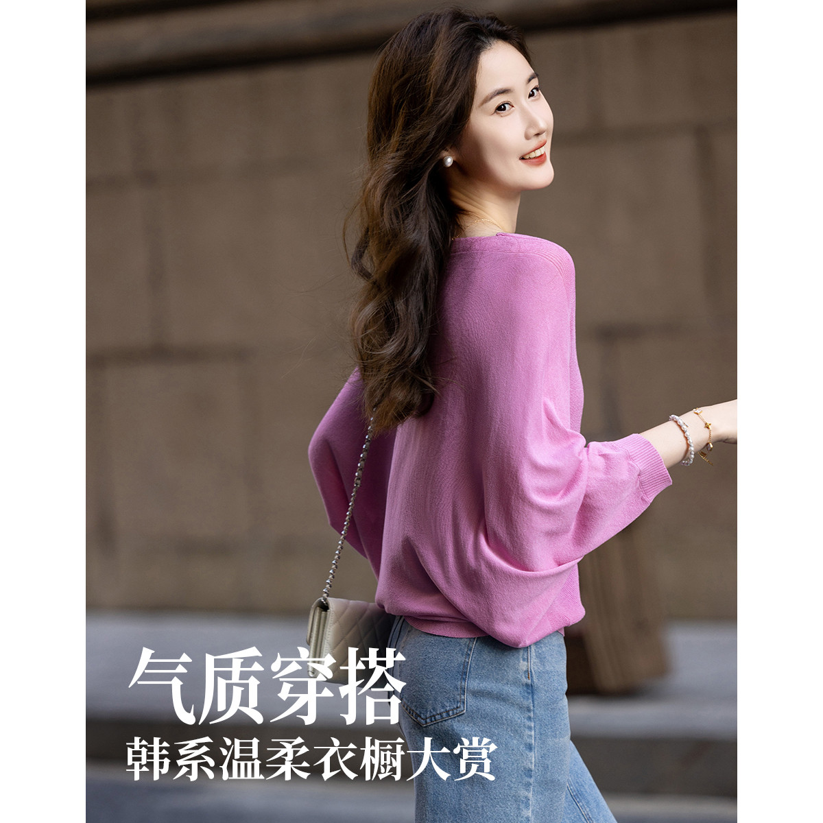 【闪光冰丝线衫】夏慵懒多巴胺V领蝙蝠袖斗篷式廓形针织衫女上衣 940417