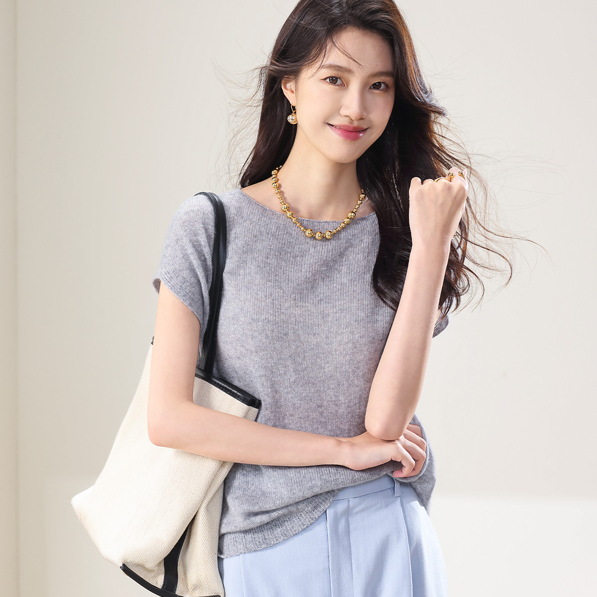 【无缝】春装圆领上衣纯色羊毛衫女简约气质短袖女式针织衫T恤 252627