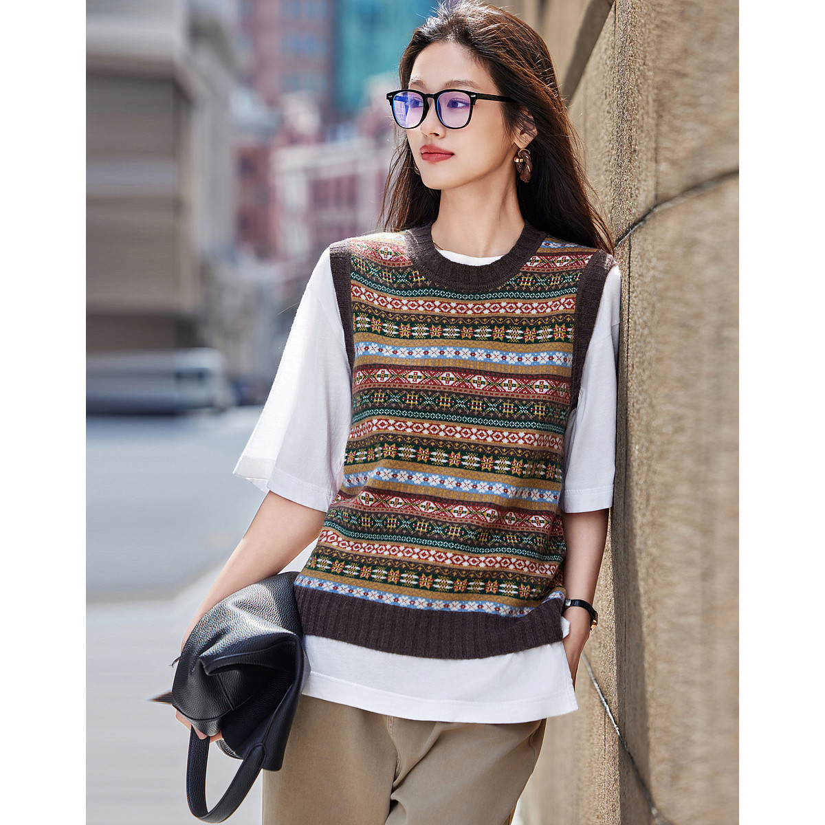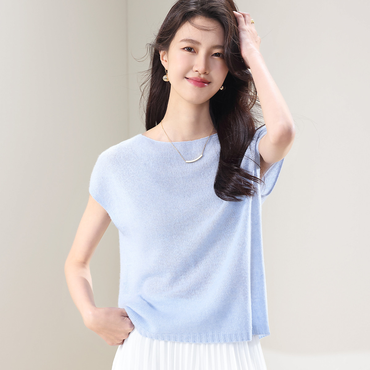 【含山羊绒】春款简约纯色圆领无袖羊毛衫女气质针织衫T恤 187091