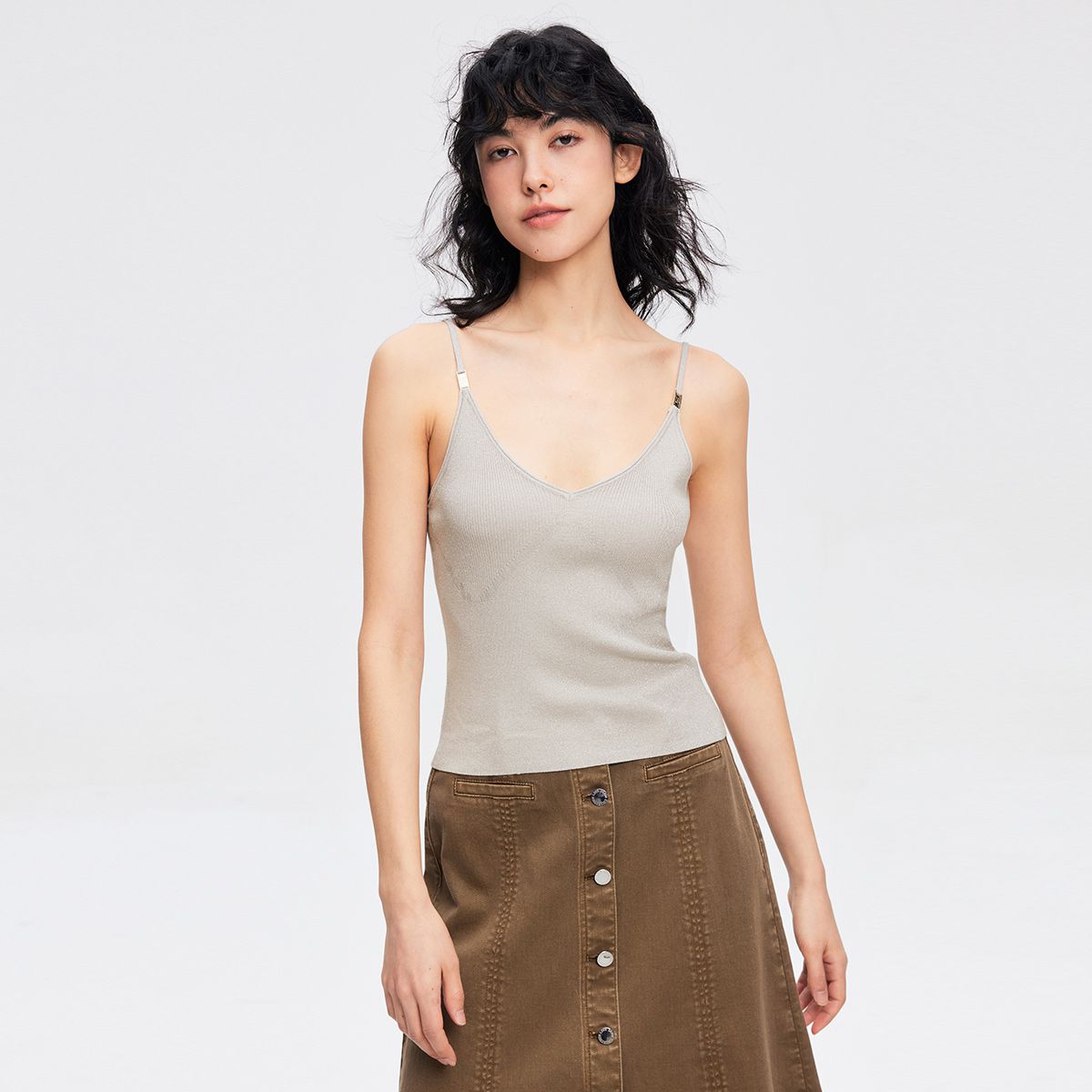 【简约纯色】夏季时尚V领短款吊带针织衫女 346138