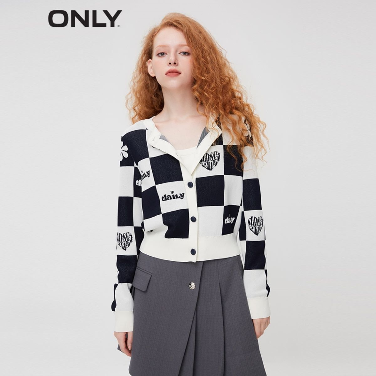 【棋盘格开衫】春季学院风格子针织衫女 333210
