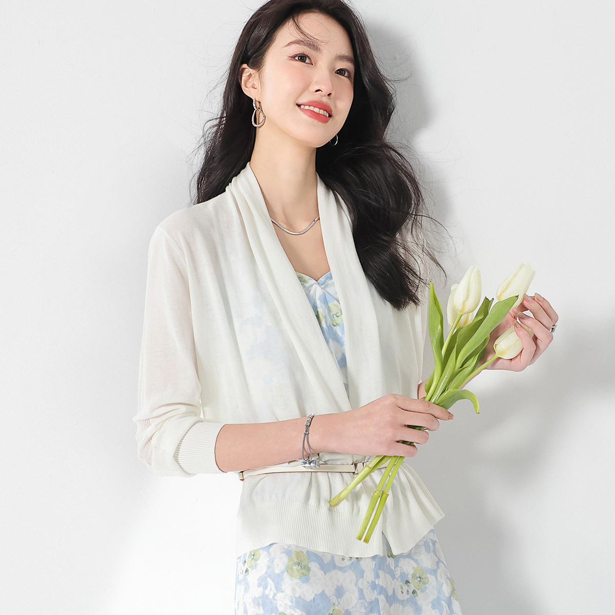 法式温柔冰丝针织开衫外套女薄款披肩空调衫女 582595