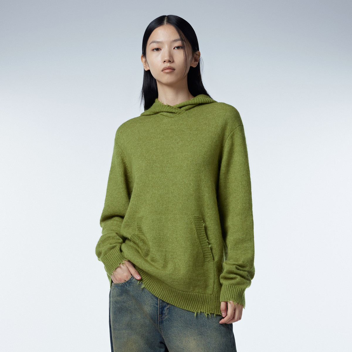 春毛针织衫宽松连帽开襟毛衫女 219595