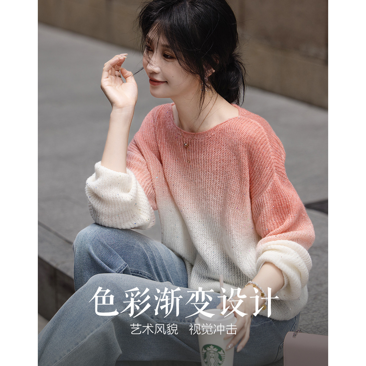 【丁达尔穿搭】春秋艺术感渐变含绵羊毛线衫慵懒藏肉针织衫女上衣 995777