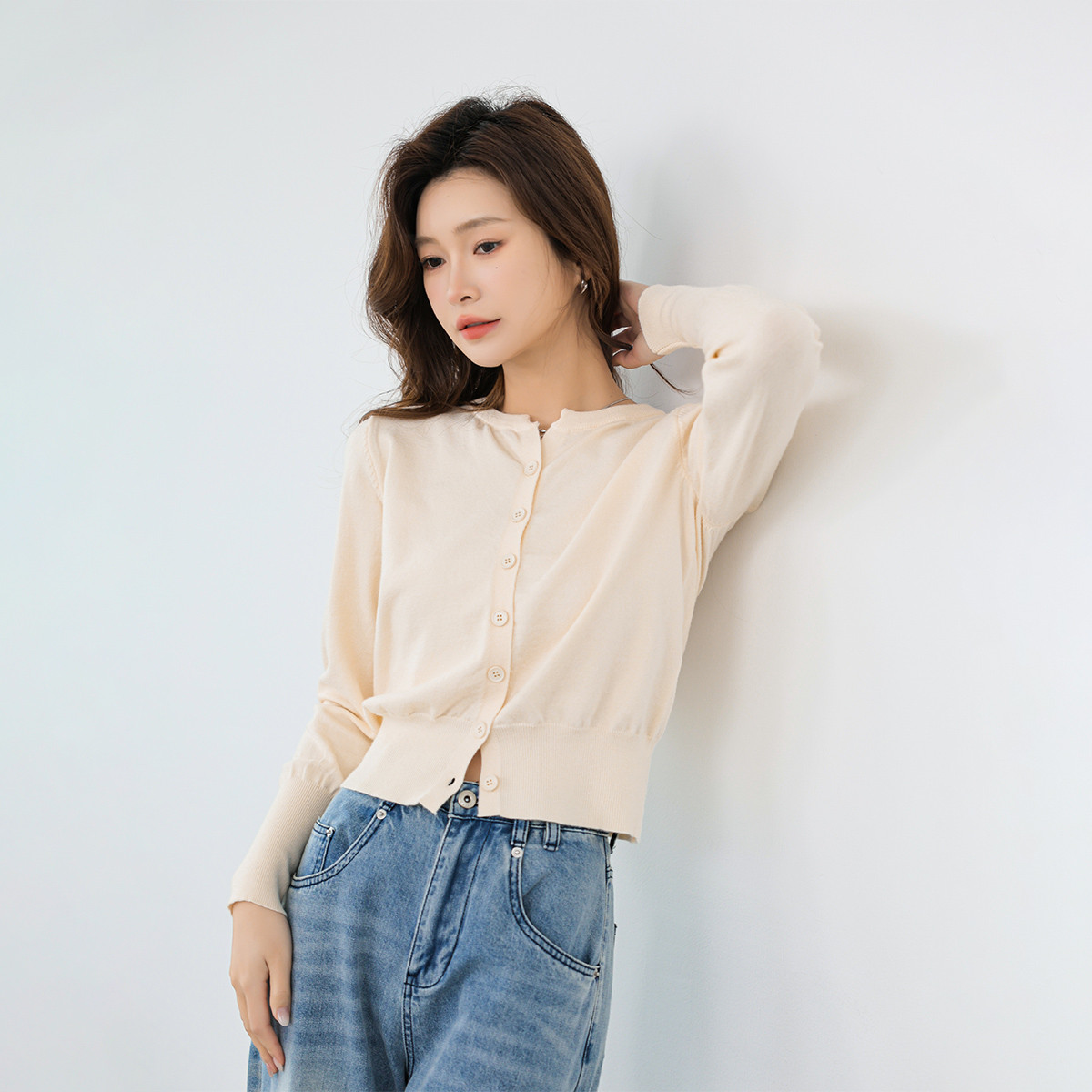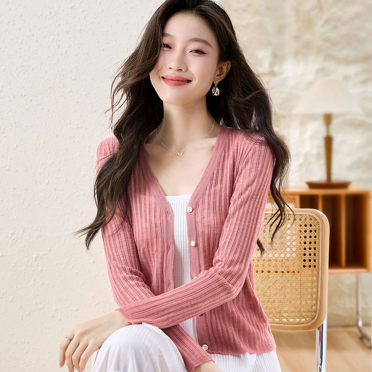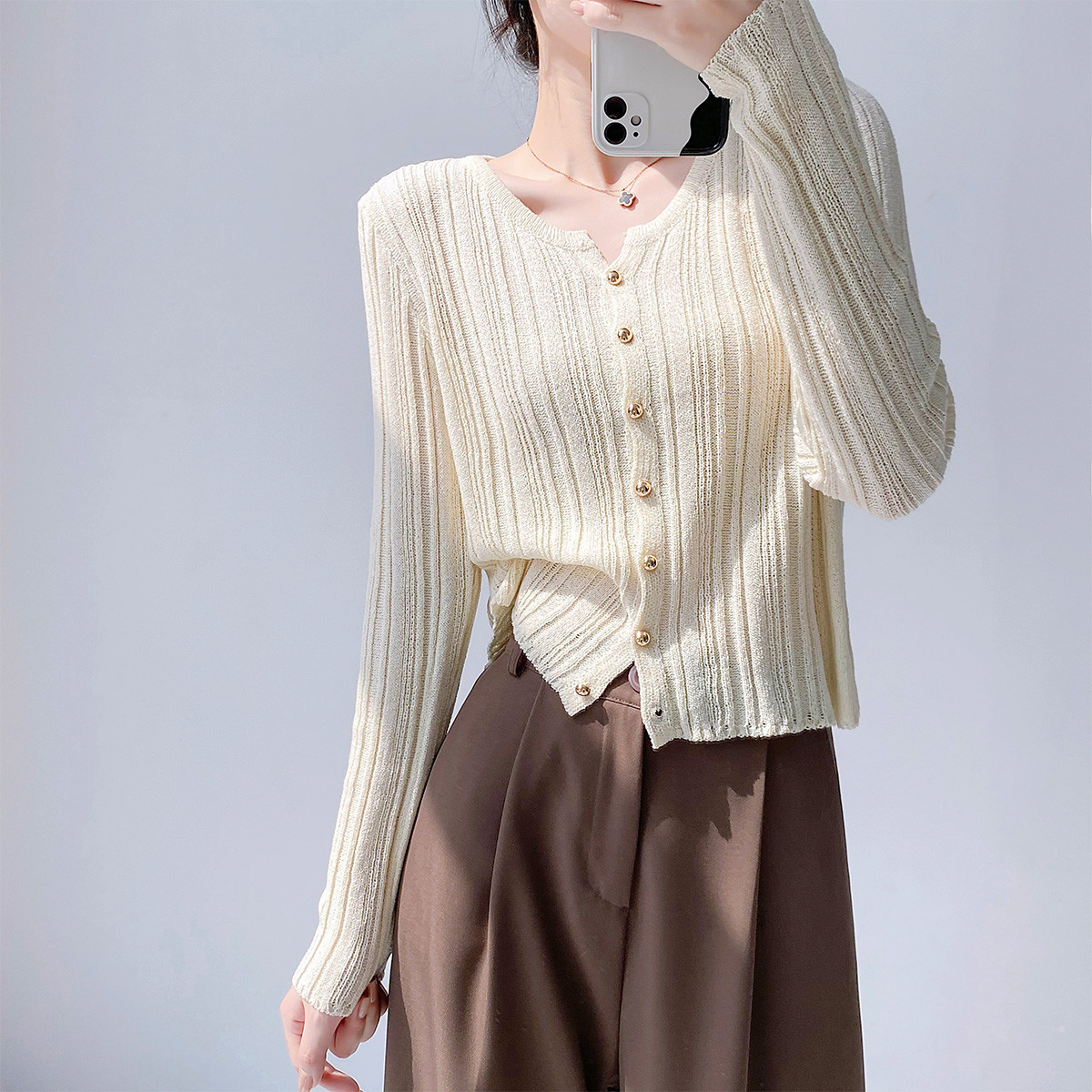 【2024夏季】薄荷曼波薄款简约修身V领长袖针织开衫衣长袖女 999828