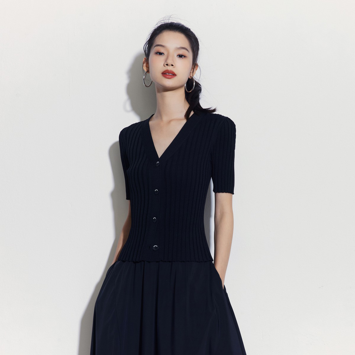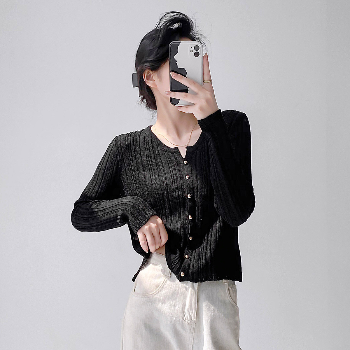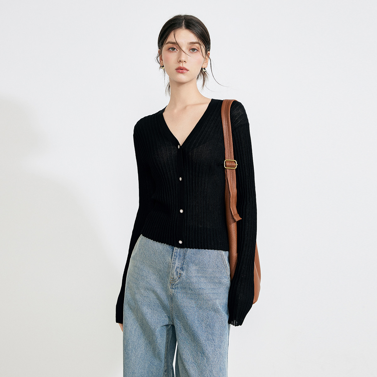 【2024夏季】薄荷曼波薄款简约修身V领长袖针织开衫衣长袖女 999828