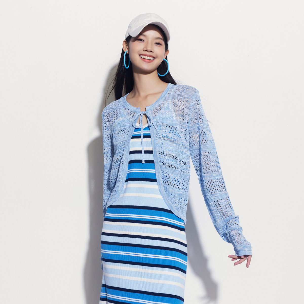 Gap女装夏季镂空纱线长袖系带针织开衫度假风外搭465698 987738