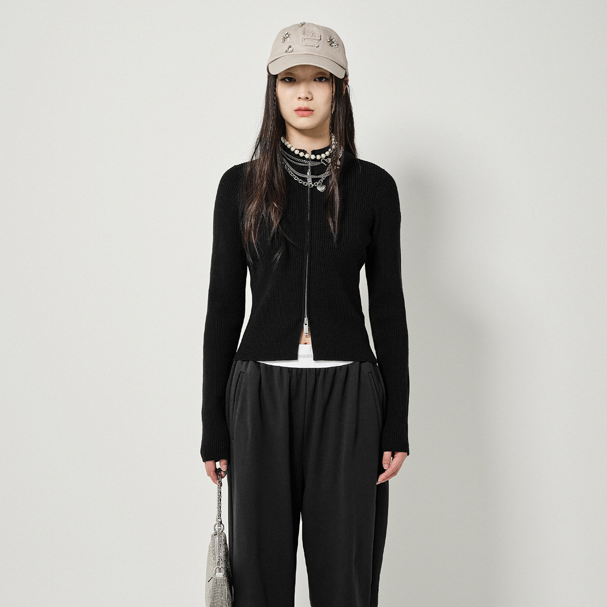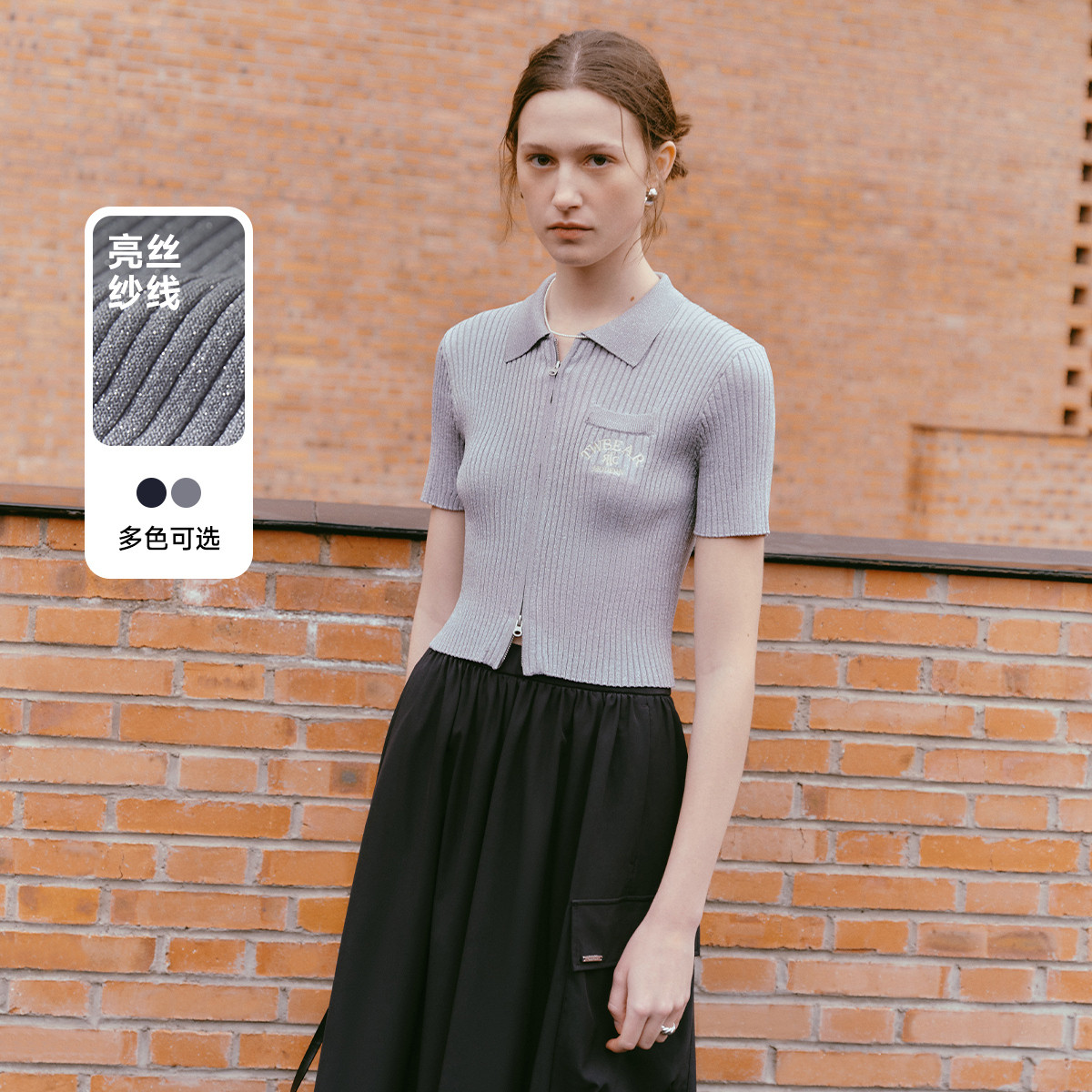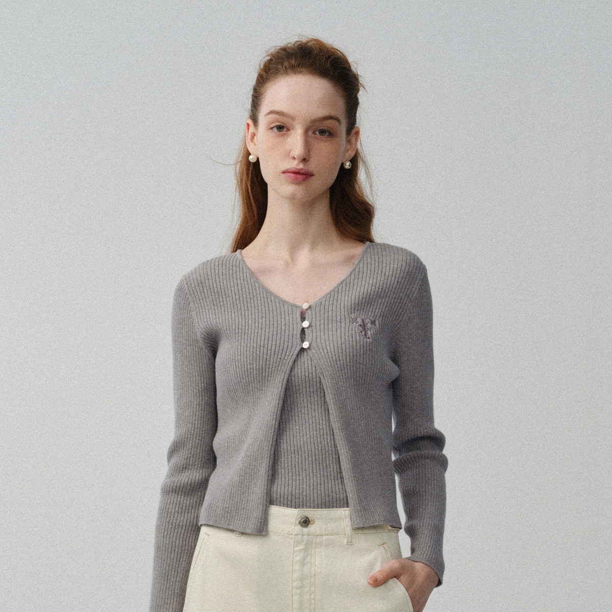 【纯色开衫】针织衫女开衫长袖坑条简约格雷灰韩系 195473