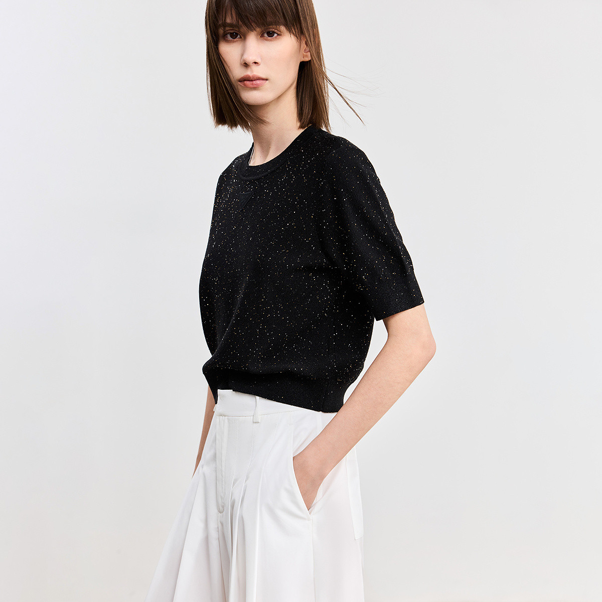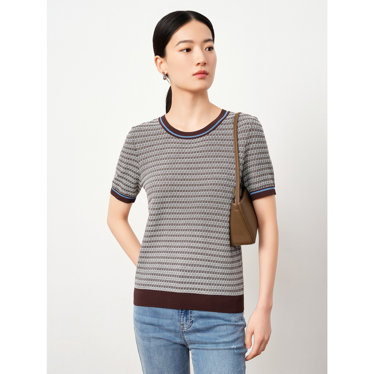 【春季】经典圆领百搭都市通勤显瘦短袖针织衫上衣 391899