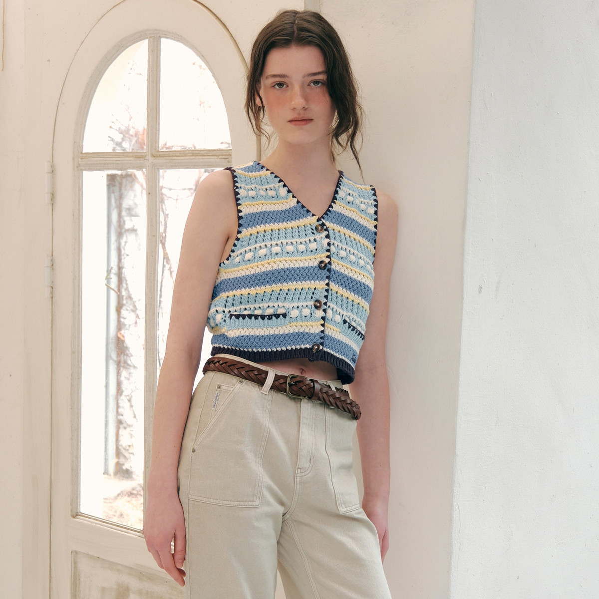 小熊女装V领镂空开衫马甲无袖针织开衫 794369