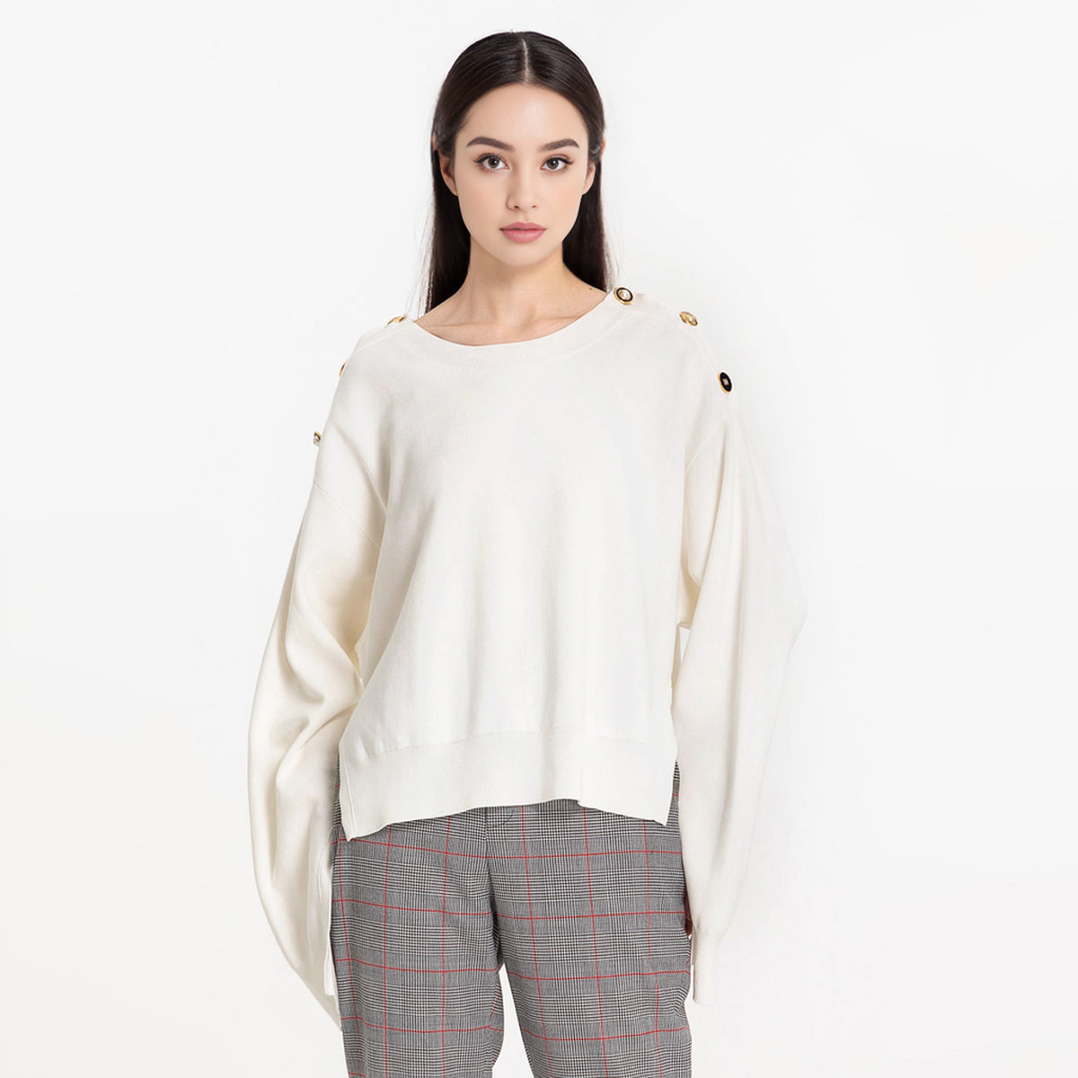 JZ玖姿商场同款轻熟肌理格纹针织套头衫女夏季JWDX31208 306956
