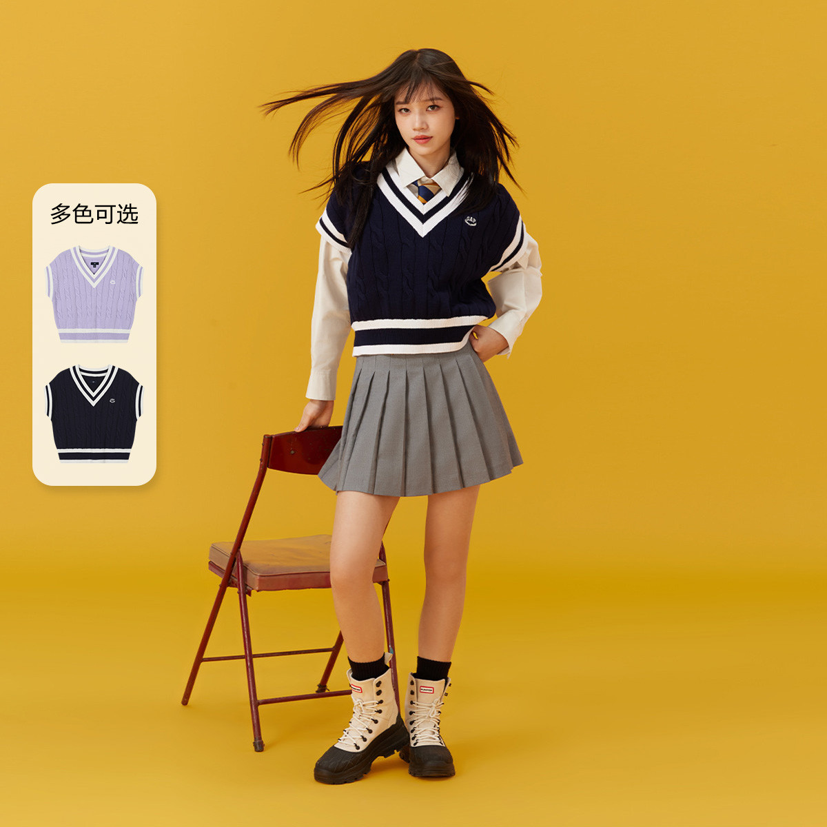Gap女装春款纯棉撞色甜辣针织衫学院风背心毛衣890004 639706