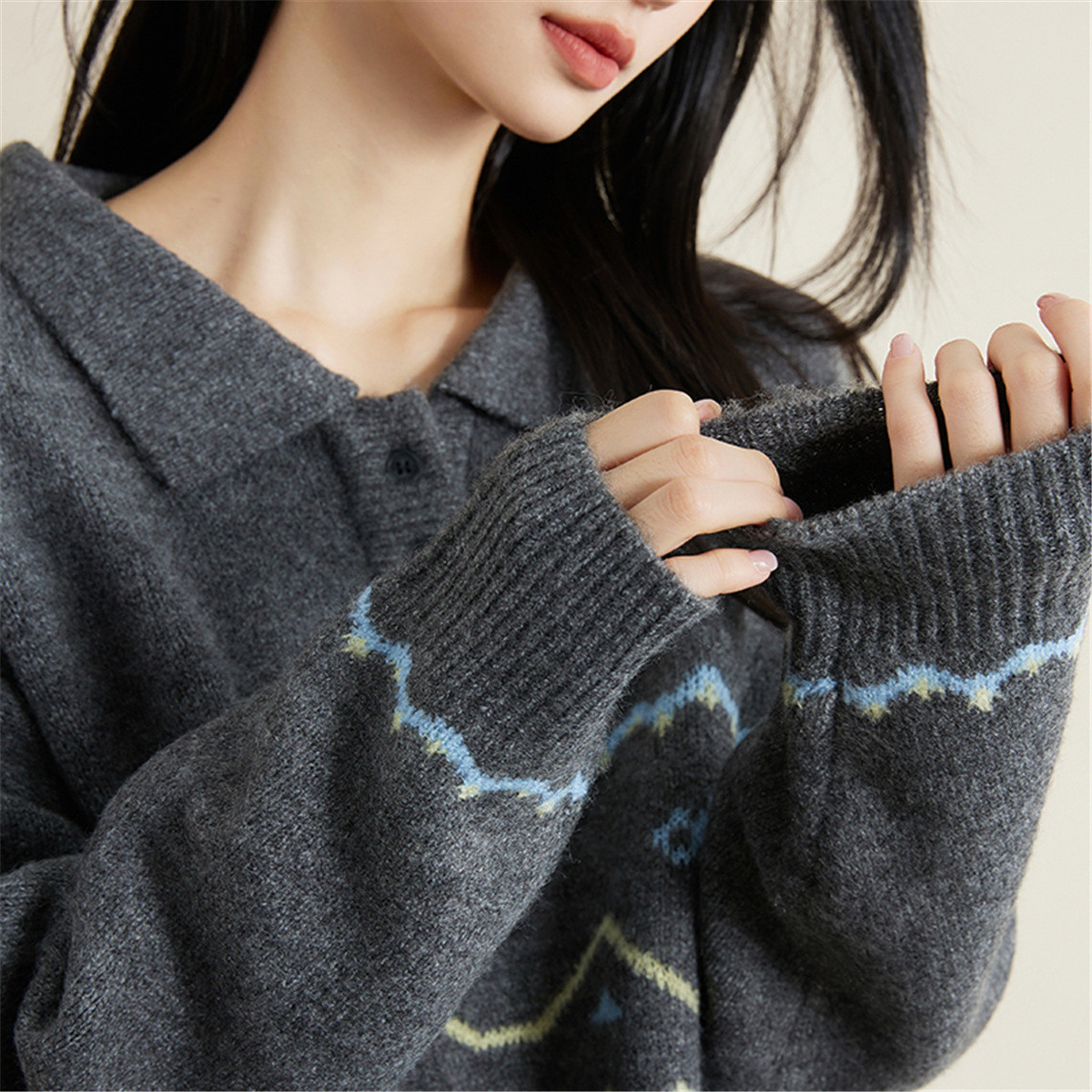 【翻领毛衣】提花设计春款针织衫女高级感洋气舒适百搭上衣 286347