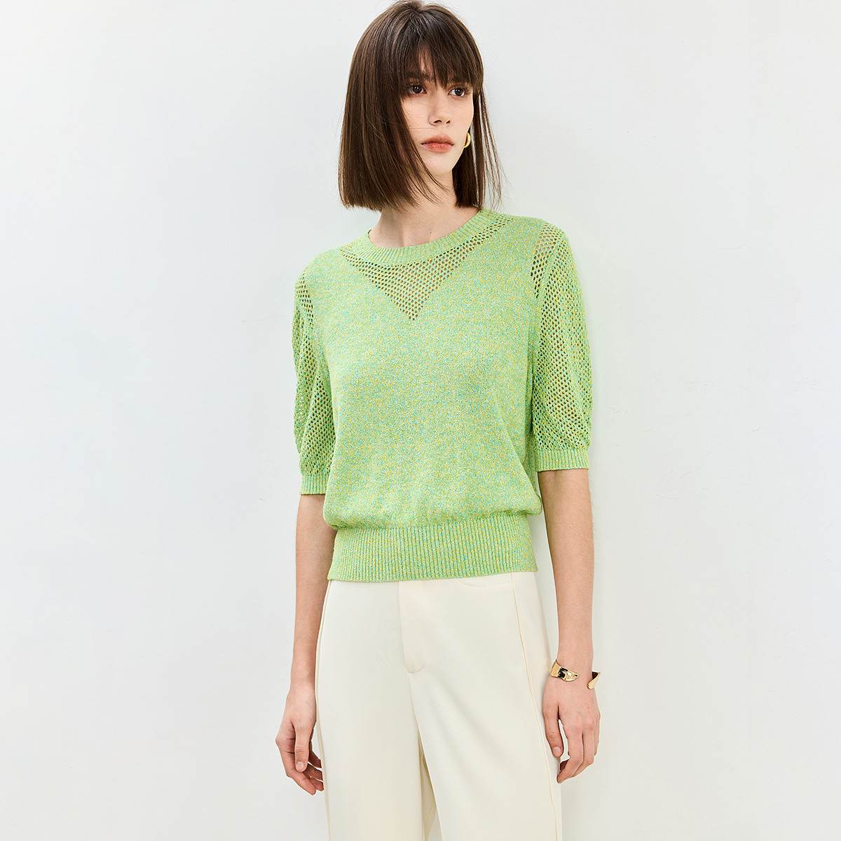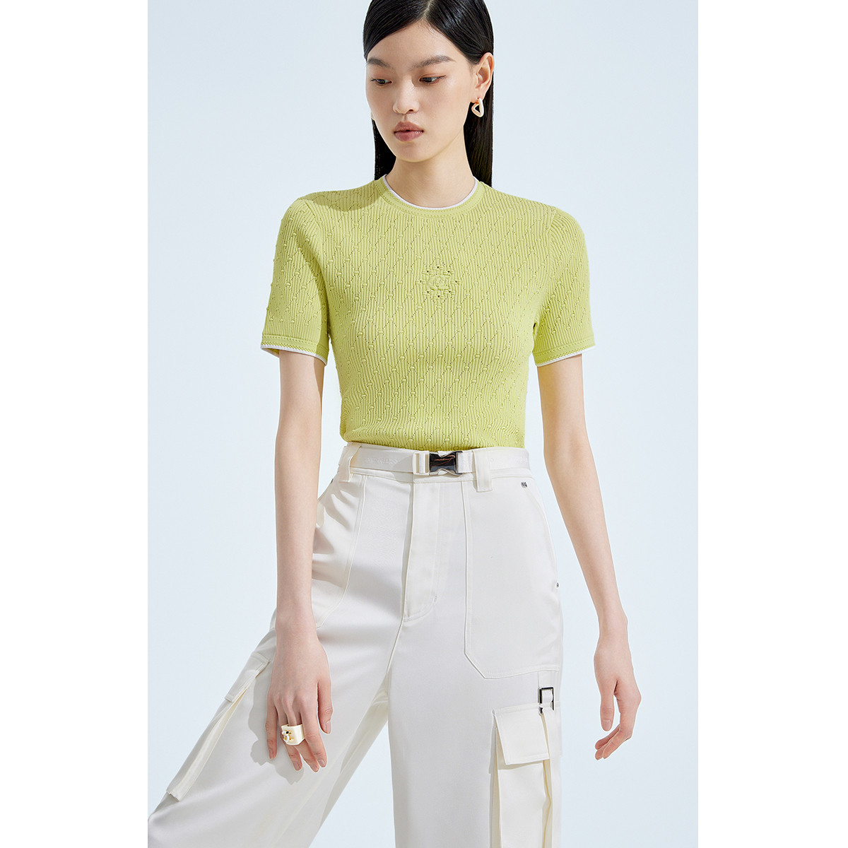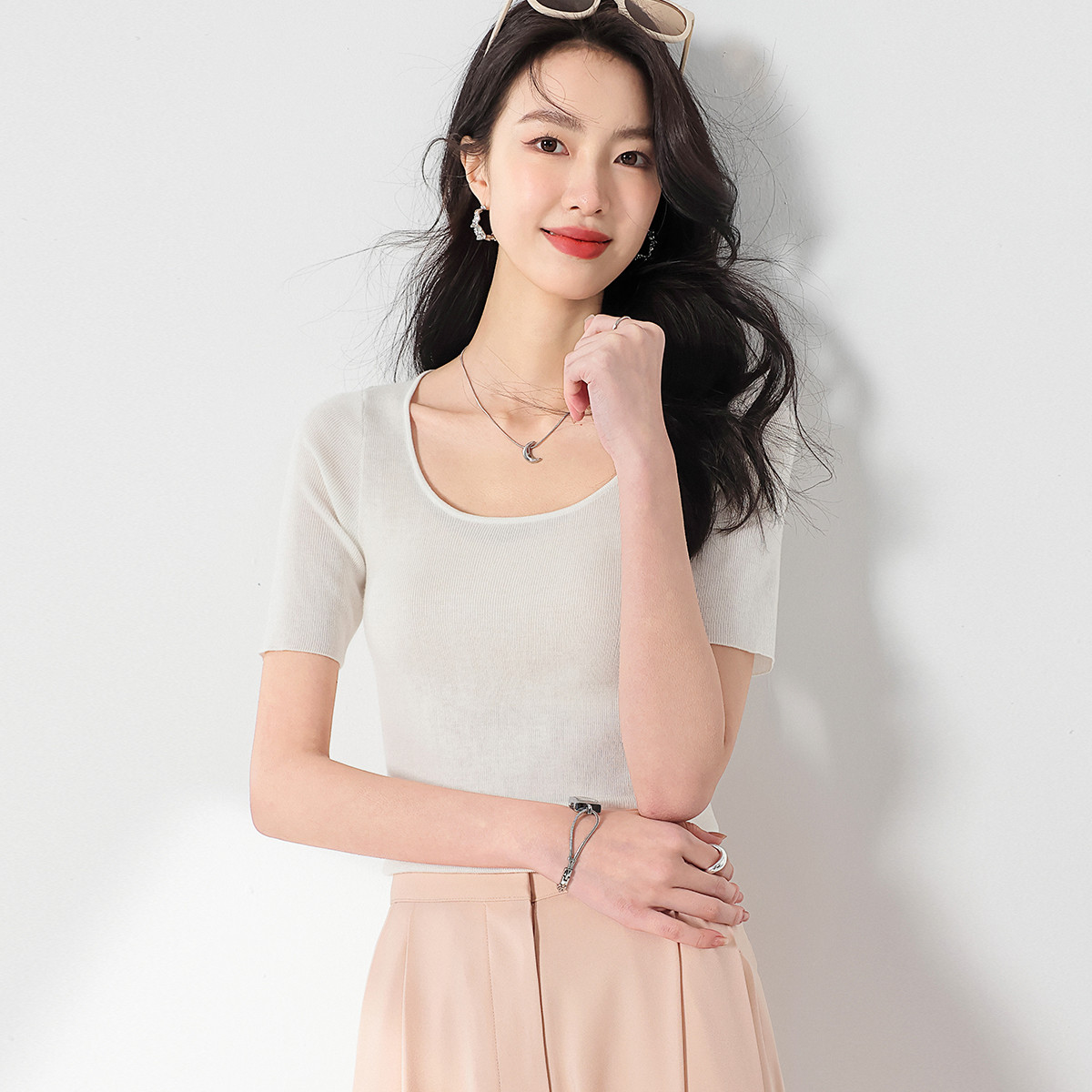简约百搭纯色基础款含桑蚕丝圆领针织杉女打底衫短袖T恤夏 354707