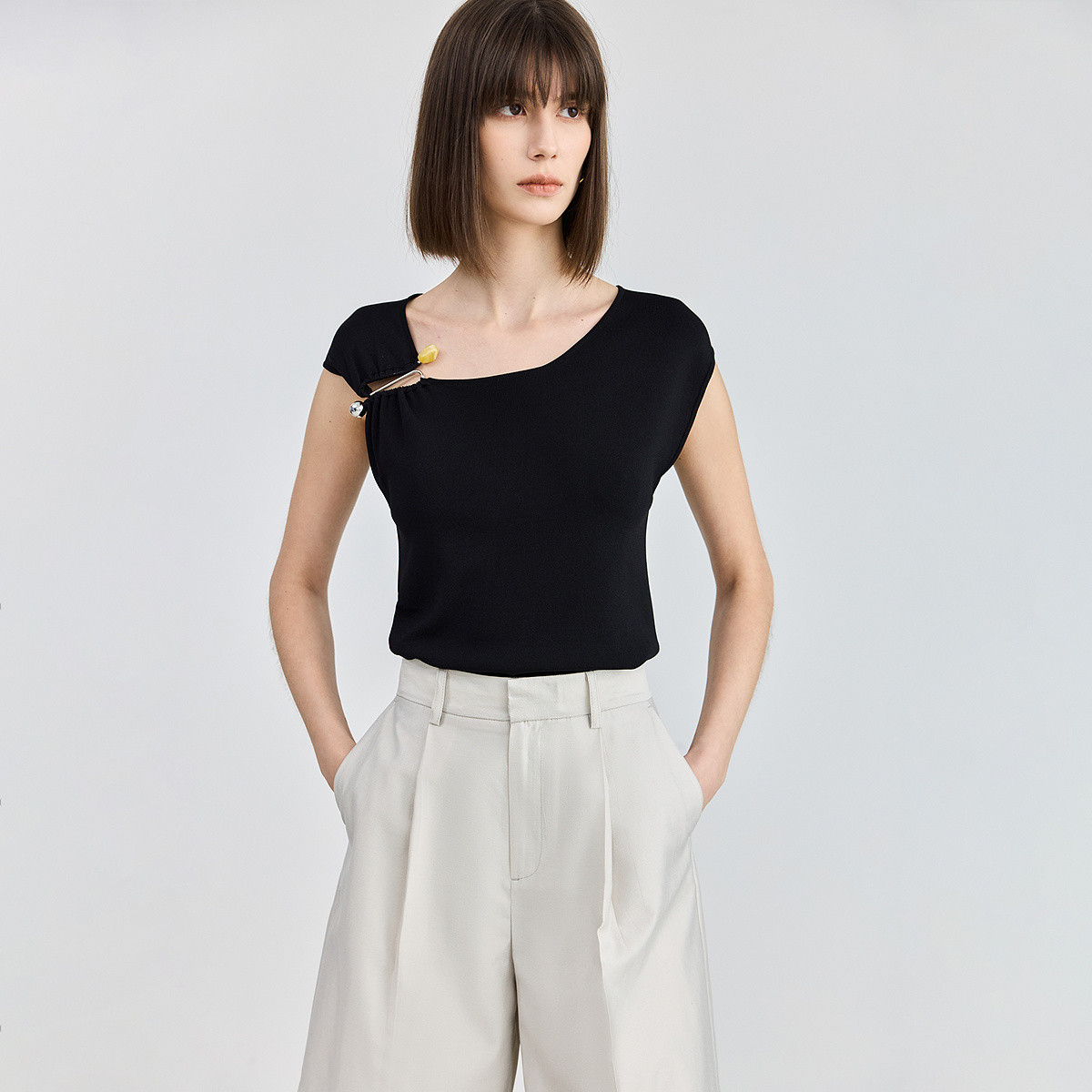 宝姿女装轻便休闲通勤日常百搭针织无袖船型领套头衫 294986
