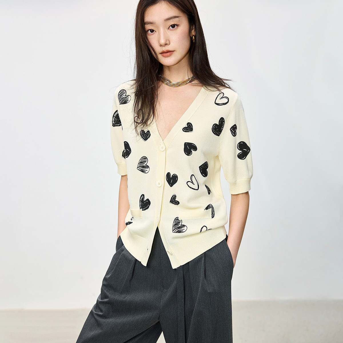 【春季】趣味设计感爱心印花复古短袖修身针织开衫外套 582555