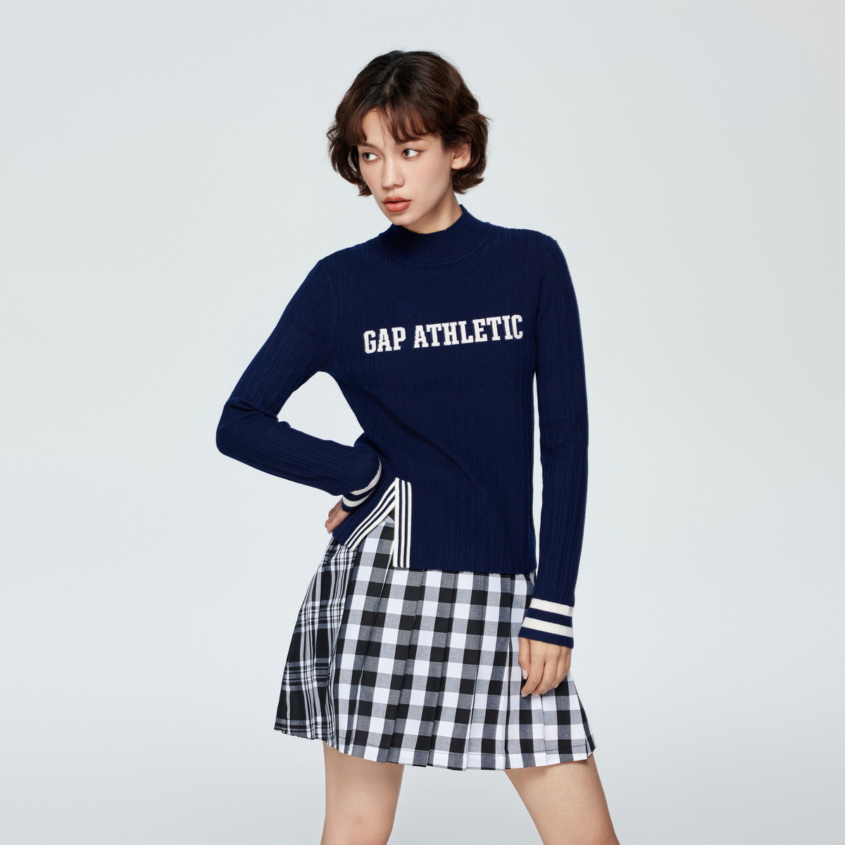 Gap女装春夏提花logo半高领小开叉超模针织衫上衣405056 436122