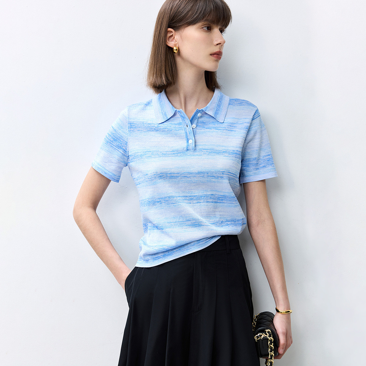 【春季】薄荷曼波polo领显瘦撞色条纹百搭短袖针织衫 226139