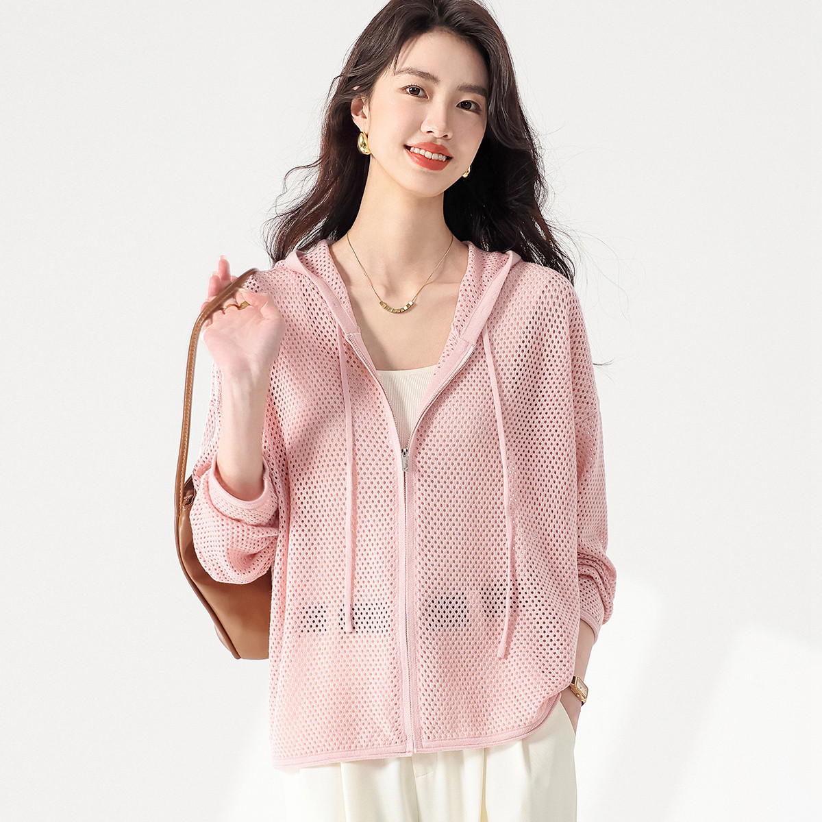 轻薄透气网眼镂空连帽羊毛针织开衫毛衣外套夏款空调衫卫衣 571027