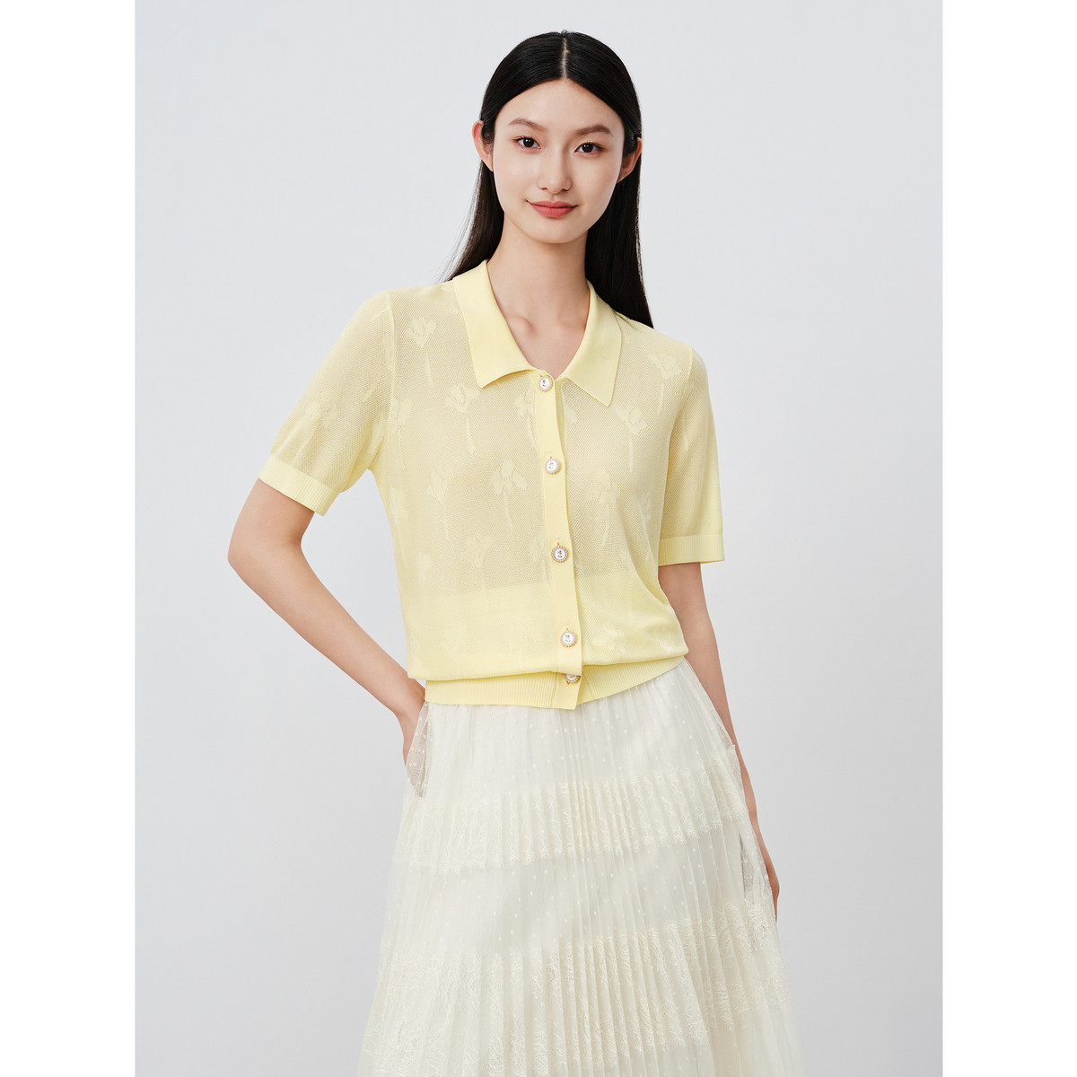 商场同款JZ玖姿简约翻领提花针织开衫女夏季JWDX30810 750732