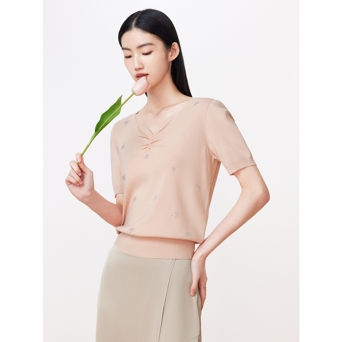 JZ玖姿商场同款优雅气质短袖针织衫女夏季JWDX31213 474572