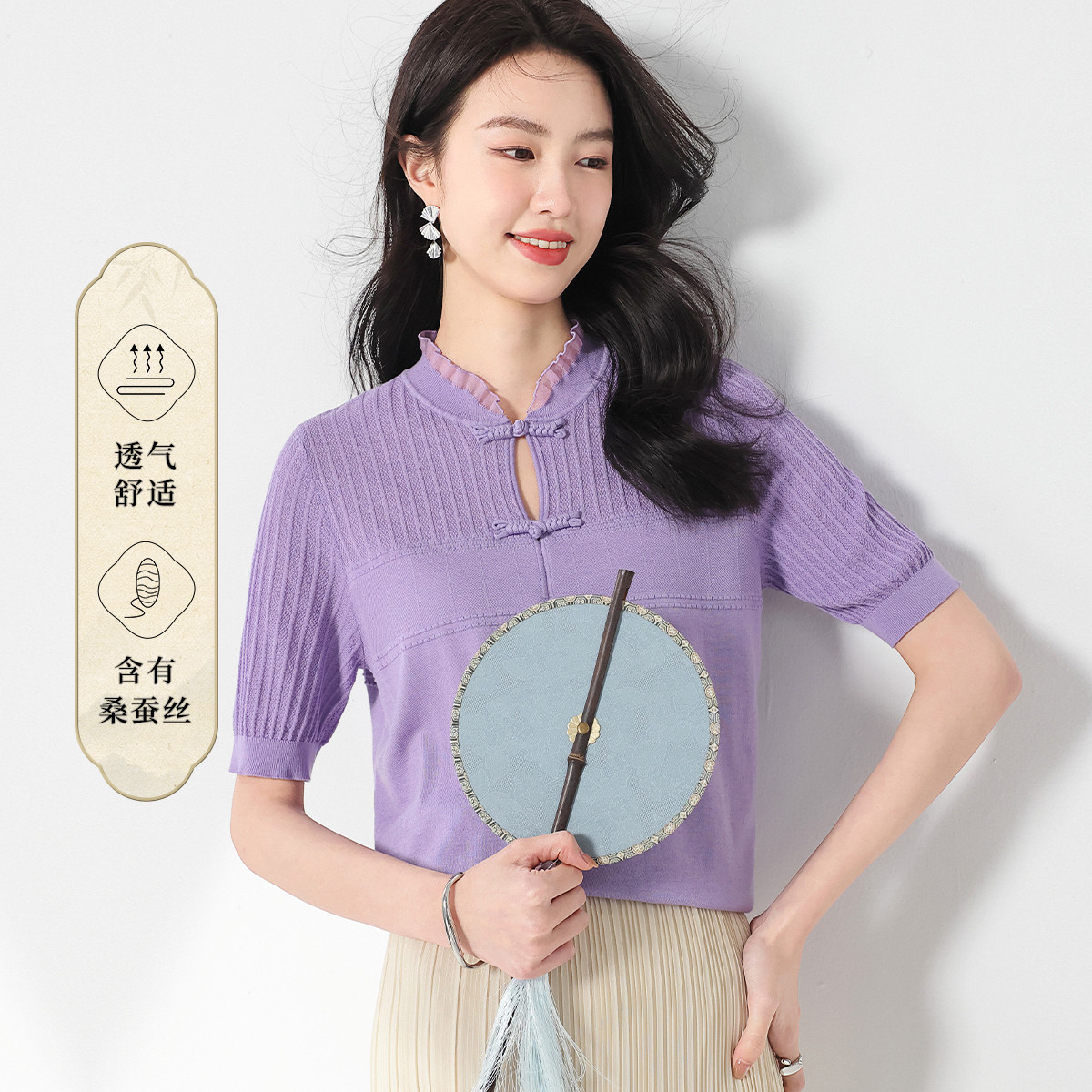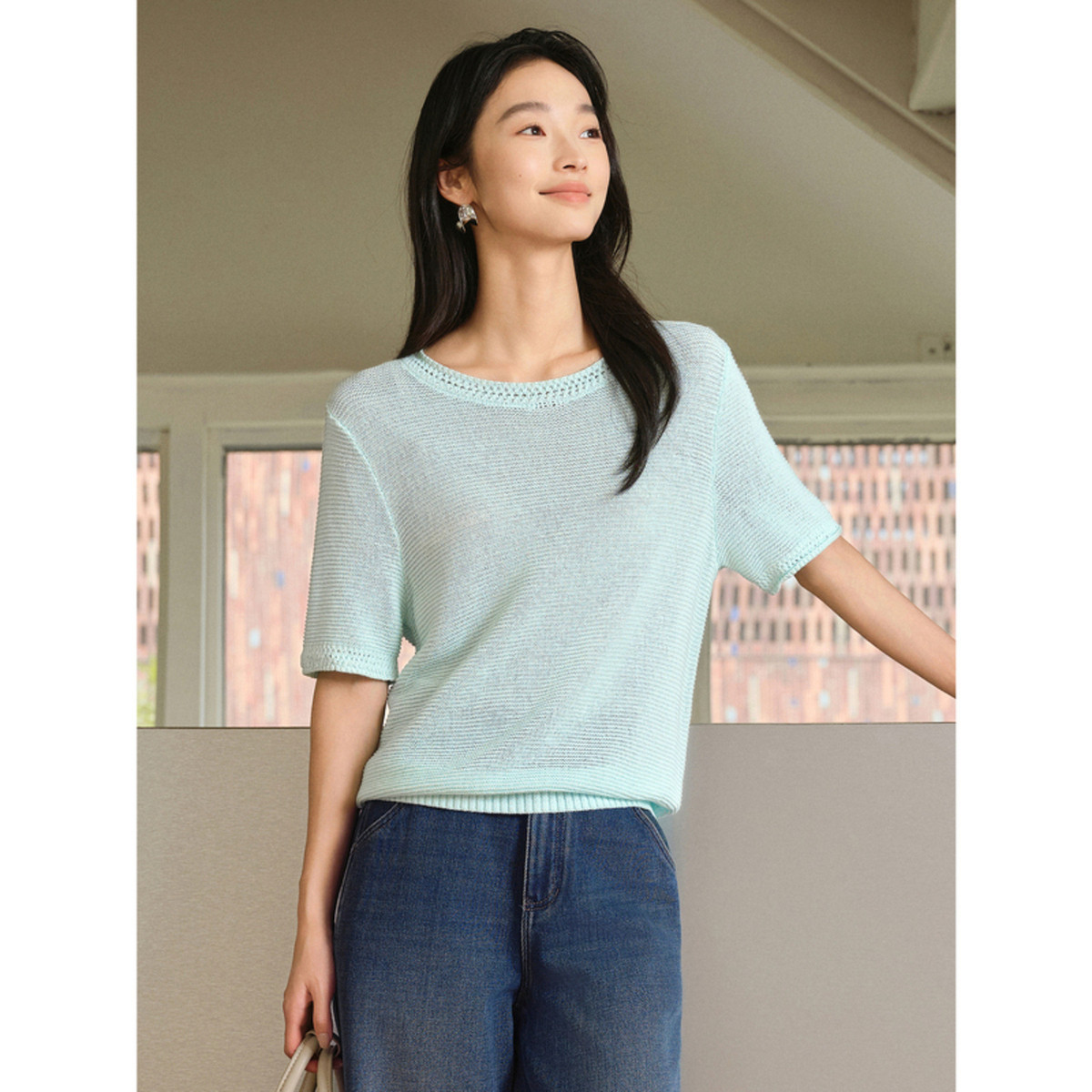 旗下安娜蔻系列低调知识分子风简约圆领短袖针织衫女装夏季 146956