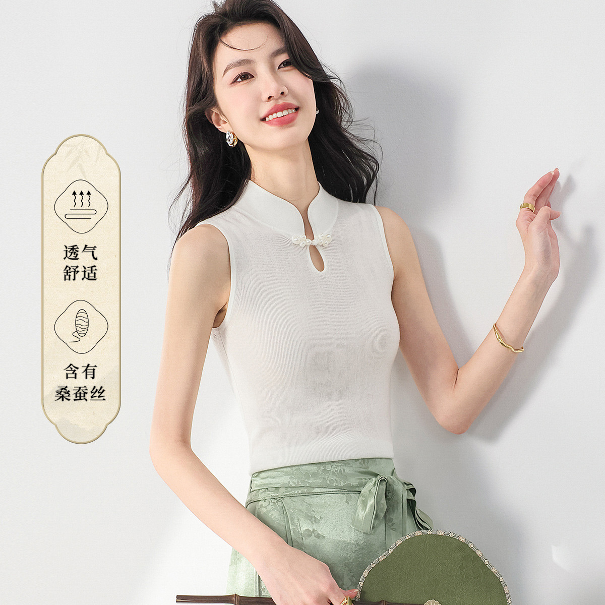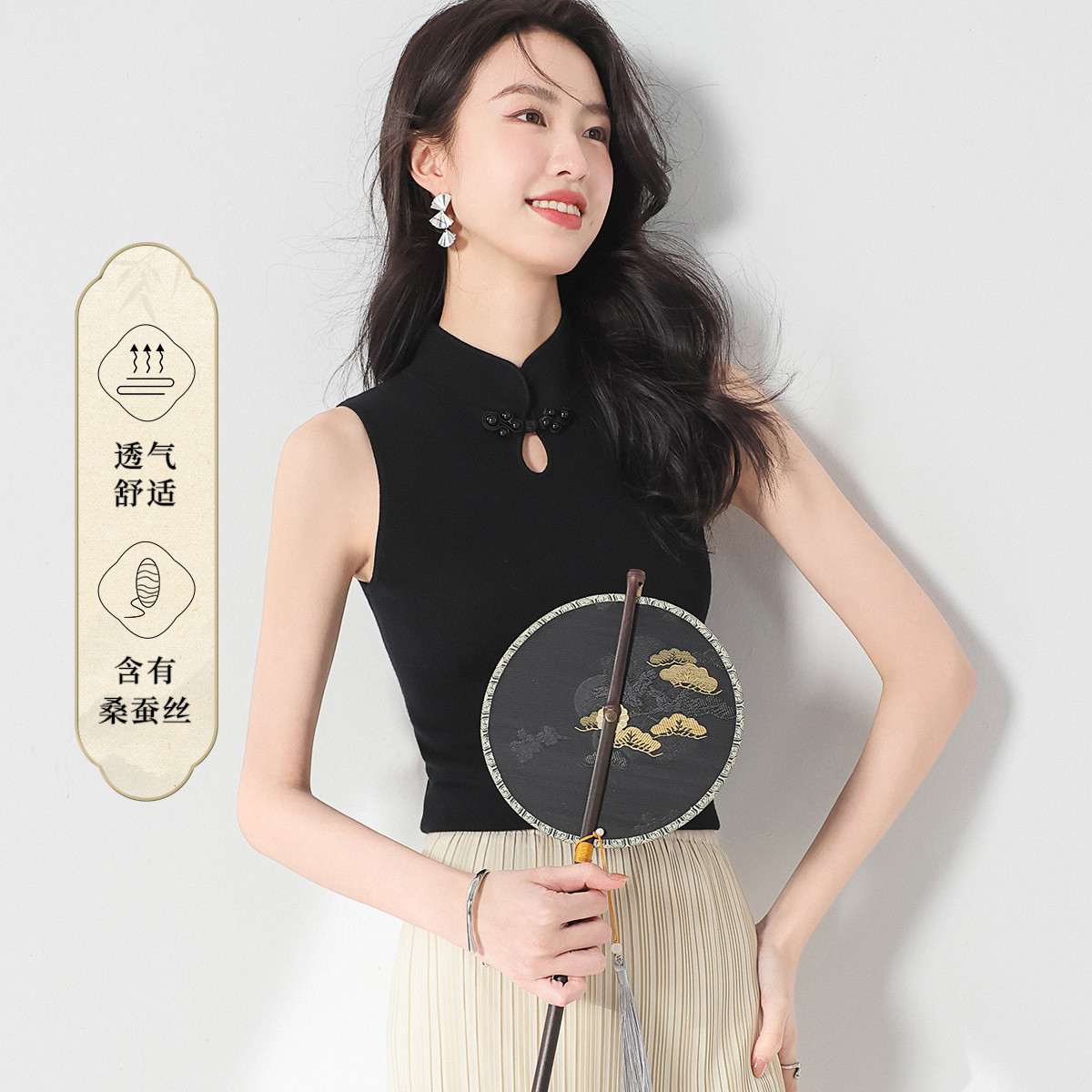 【国风】新中式轻薄透气含桑蚕丝立领无袖针织打底衫背心夏款马甲 444819