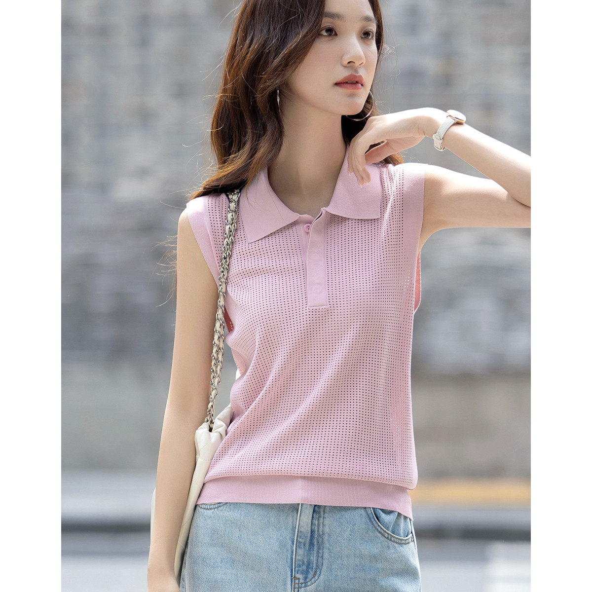 【团宠果冻线衫】夏简约风翻领露肩温润舒适双曲冰麻针织衫女上衣 571073