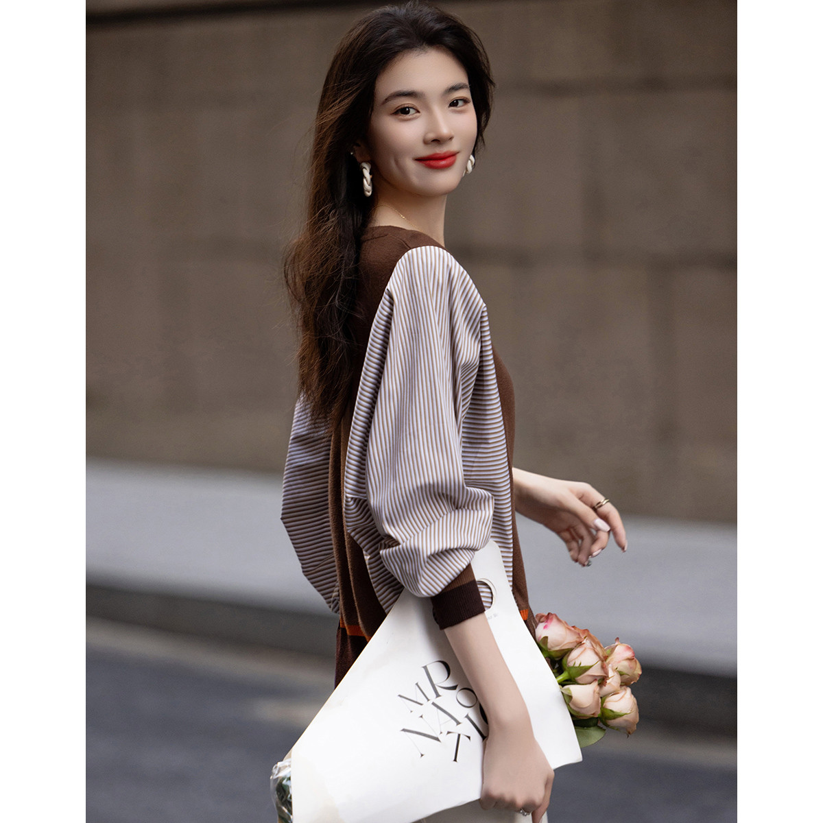【高智感老钱】秋季V领线衫舒适遮肉上衣好搭针织衫套装两件套 584129