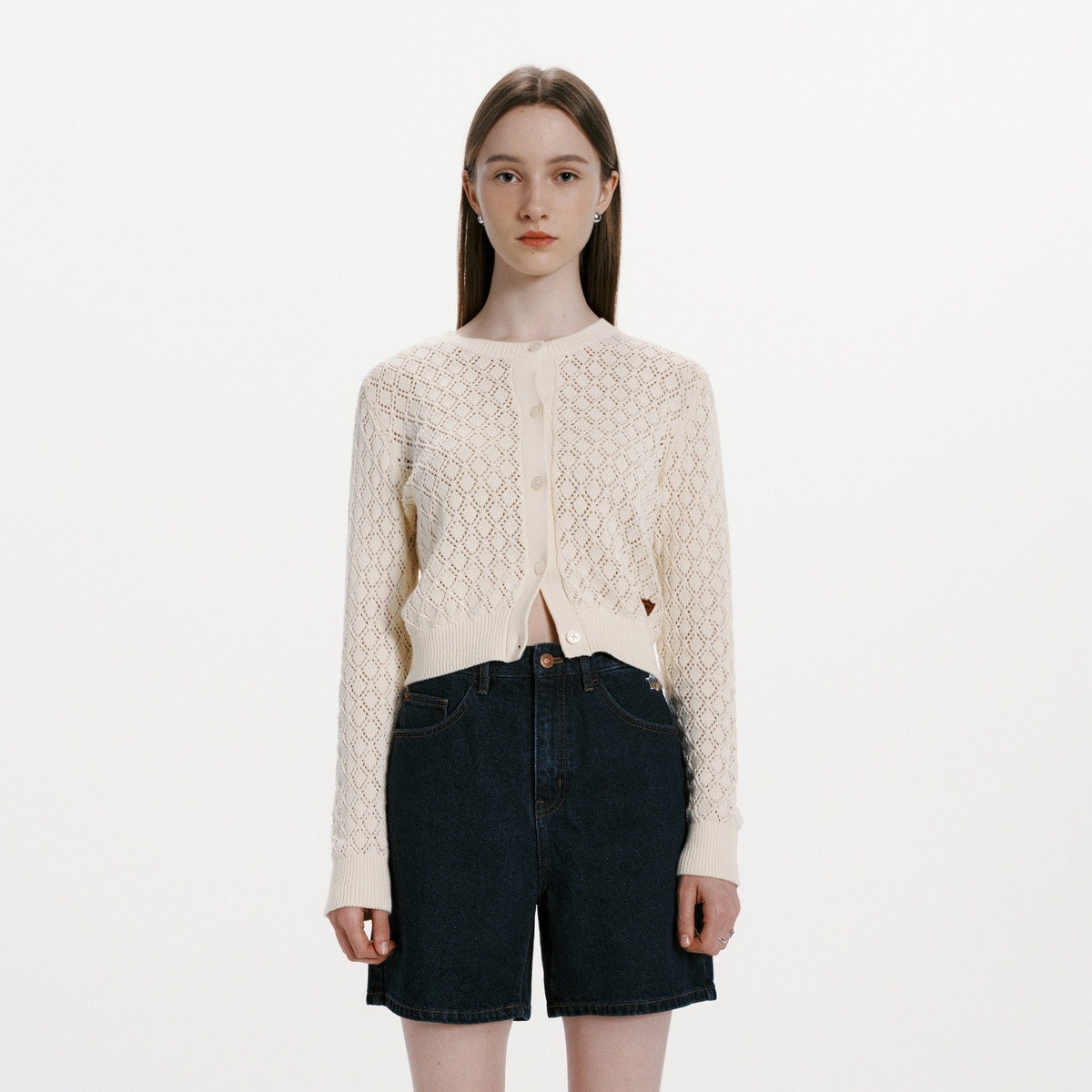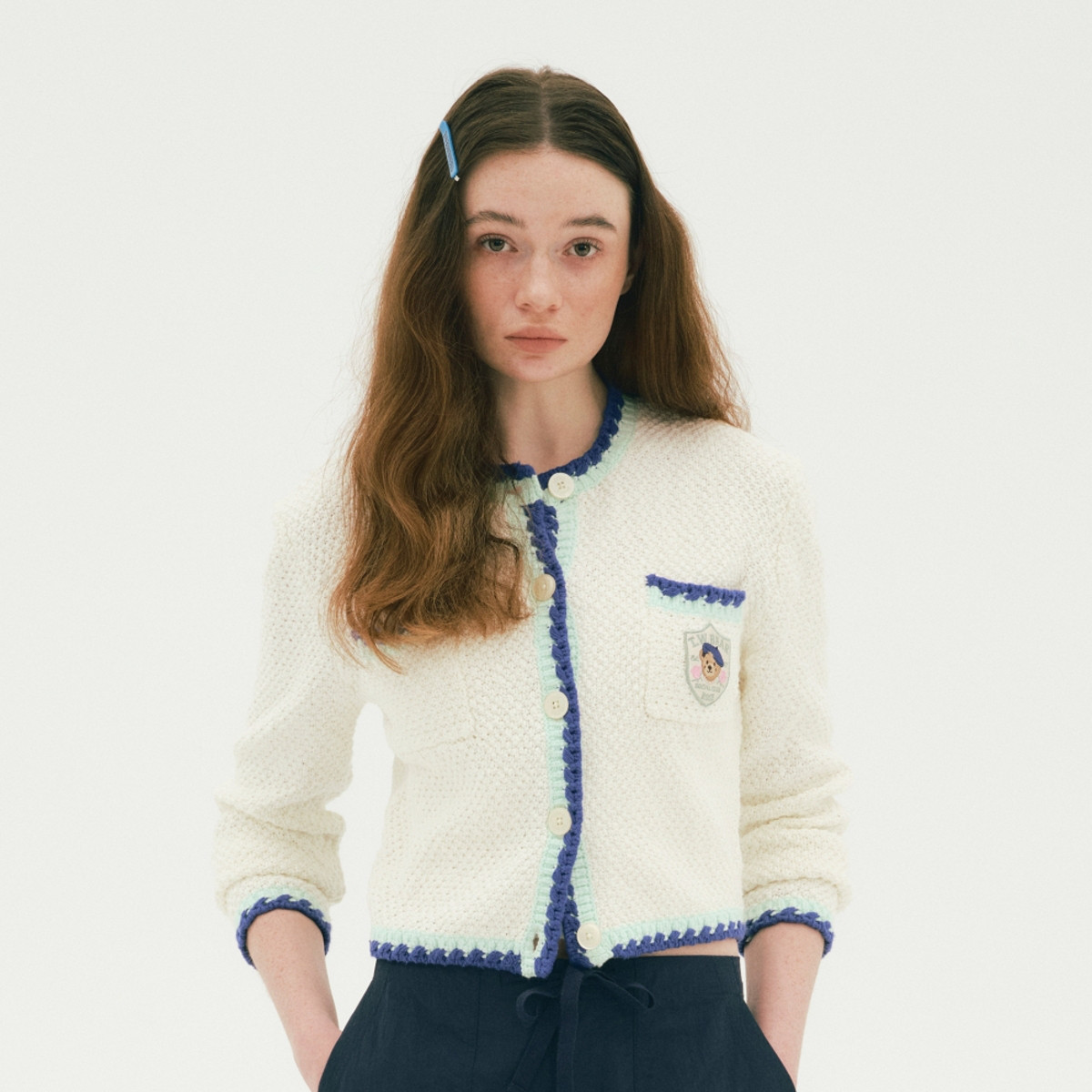 针织开衫小熊女装春秋款镂空钩花气质短款针织开衫外套 572609