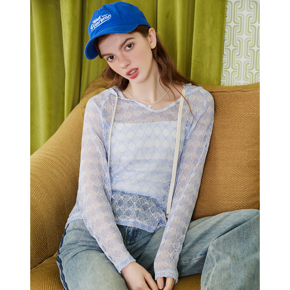 时尚钩花镂空设计感个性连帽罩衫夏季休闲气质女式针织衫 438301
