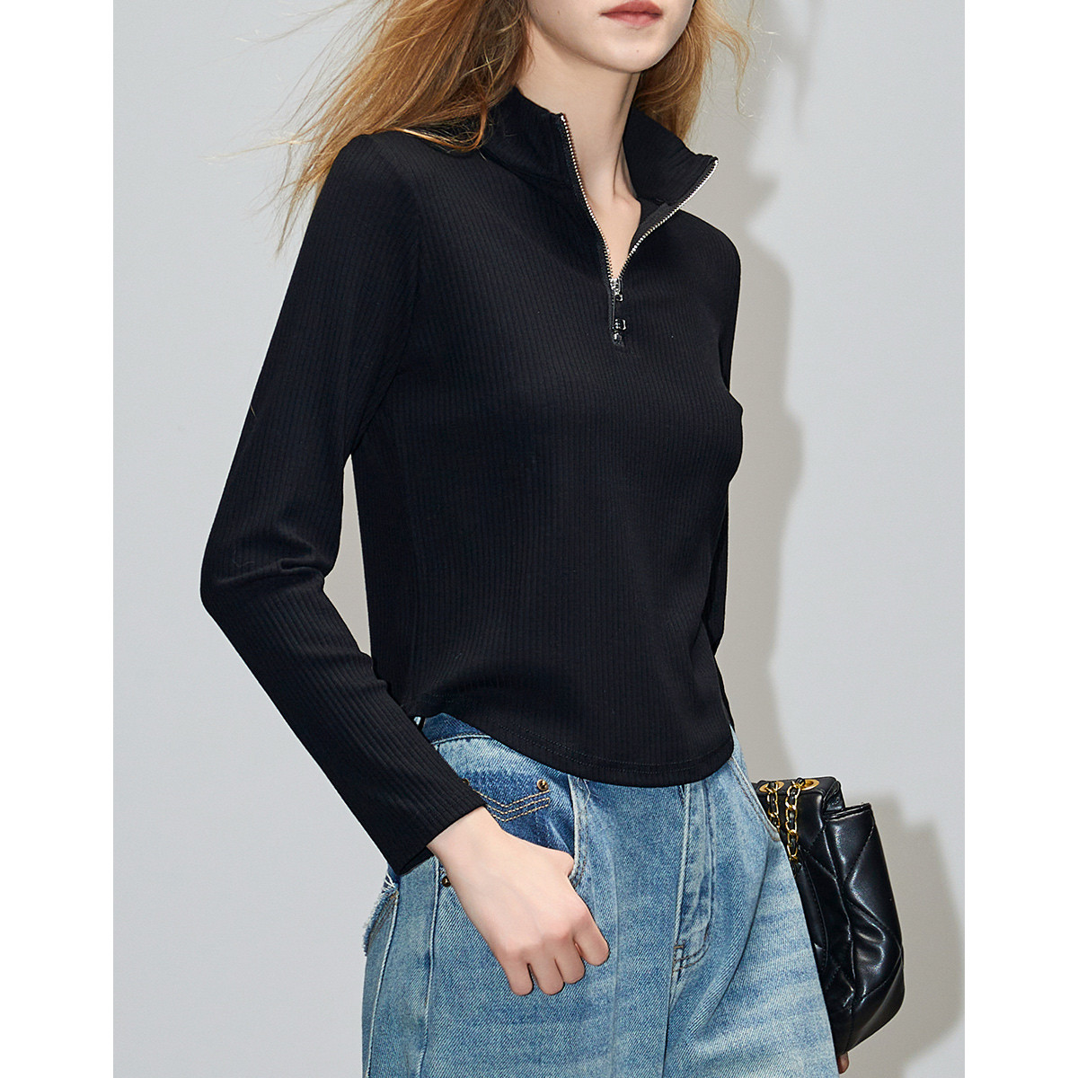 【小清新INS风】春秋立领修身显瘦甜美长袖弹力时髦女式t恤 739137