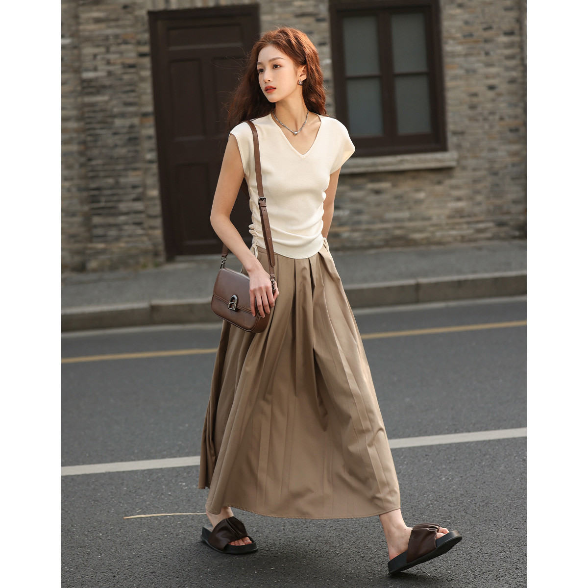 【高智感老钱】秋季V领线衫舒适遮肉上衣好搭针织衫套装两件套 584129