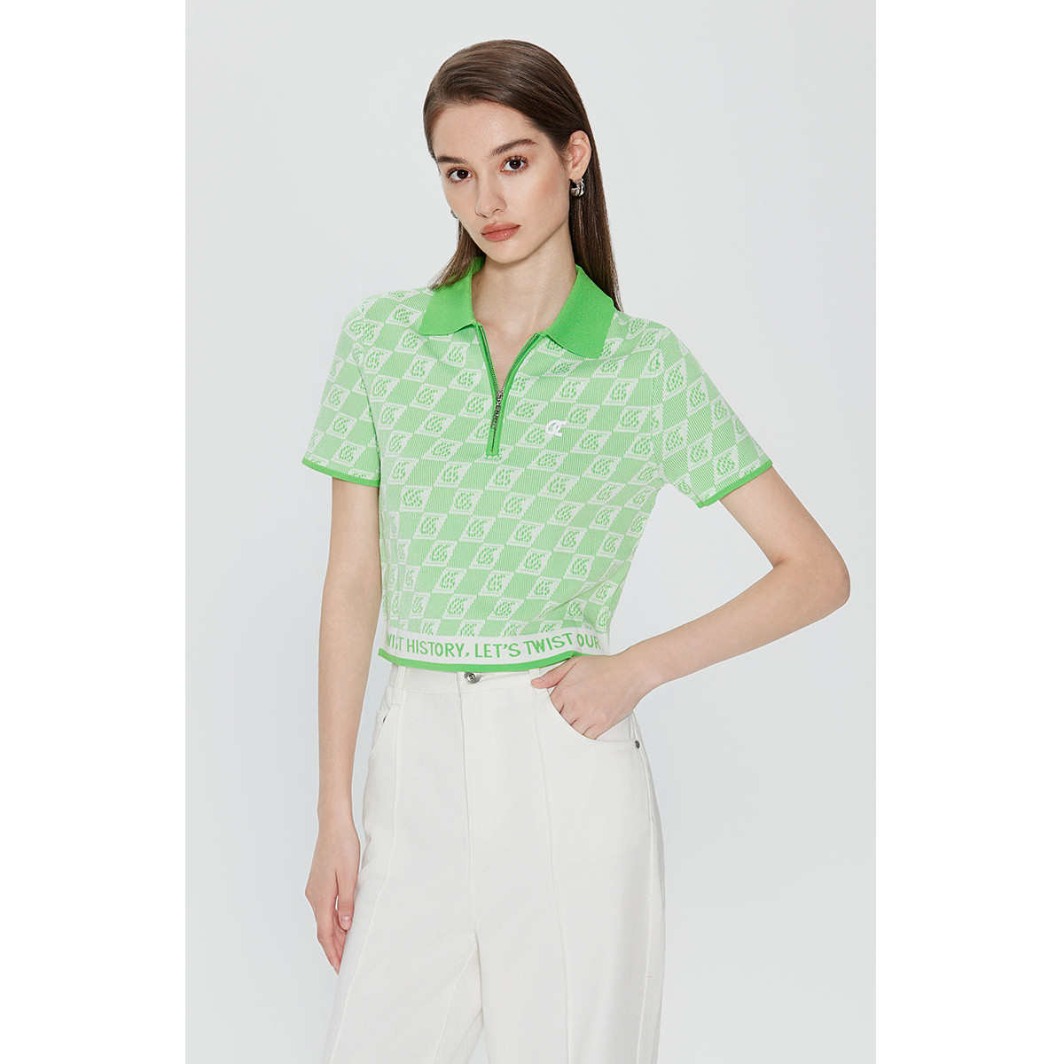 CHUU字母镂空针织衫女士夏提花修身短款套头上衣 826771