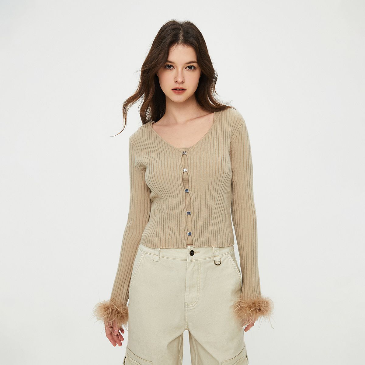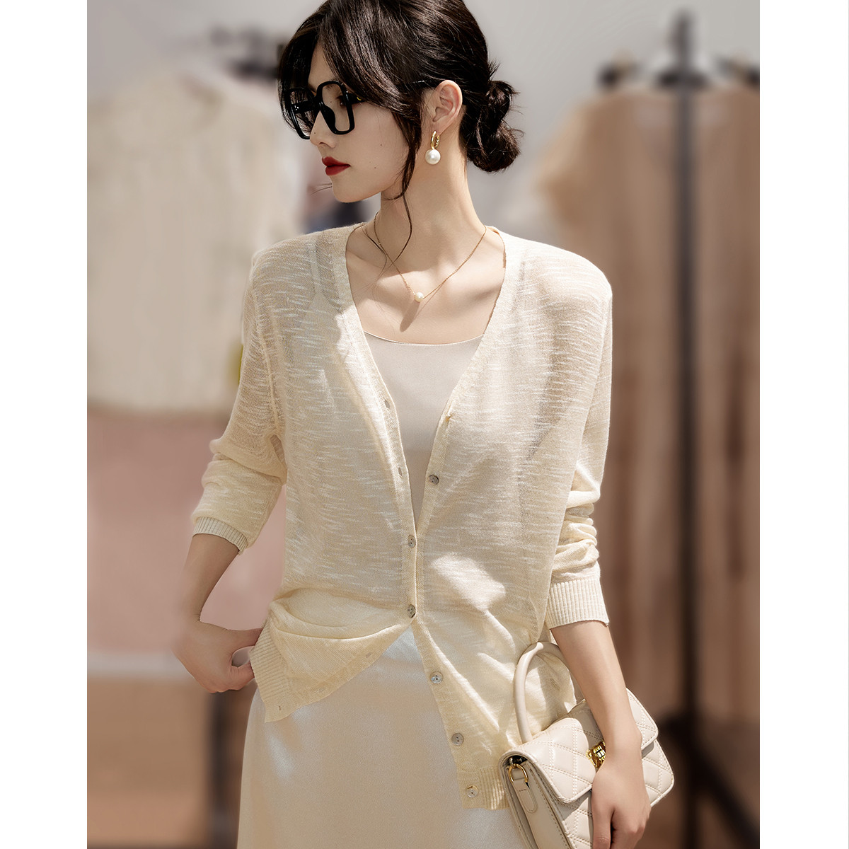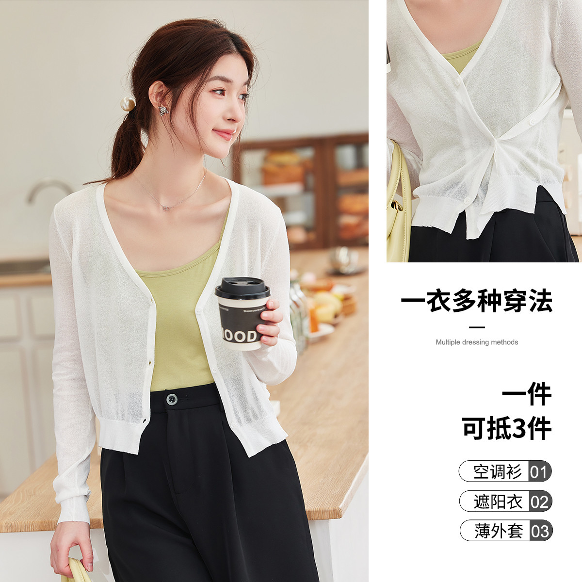 【简约风开衫】夏轻熟V领空调衫云柔感薄线衫长袖针织衫女上衣 519553