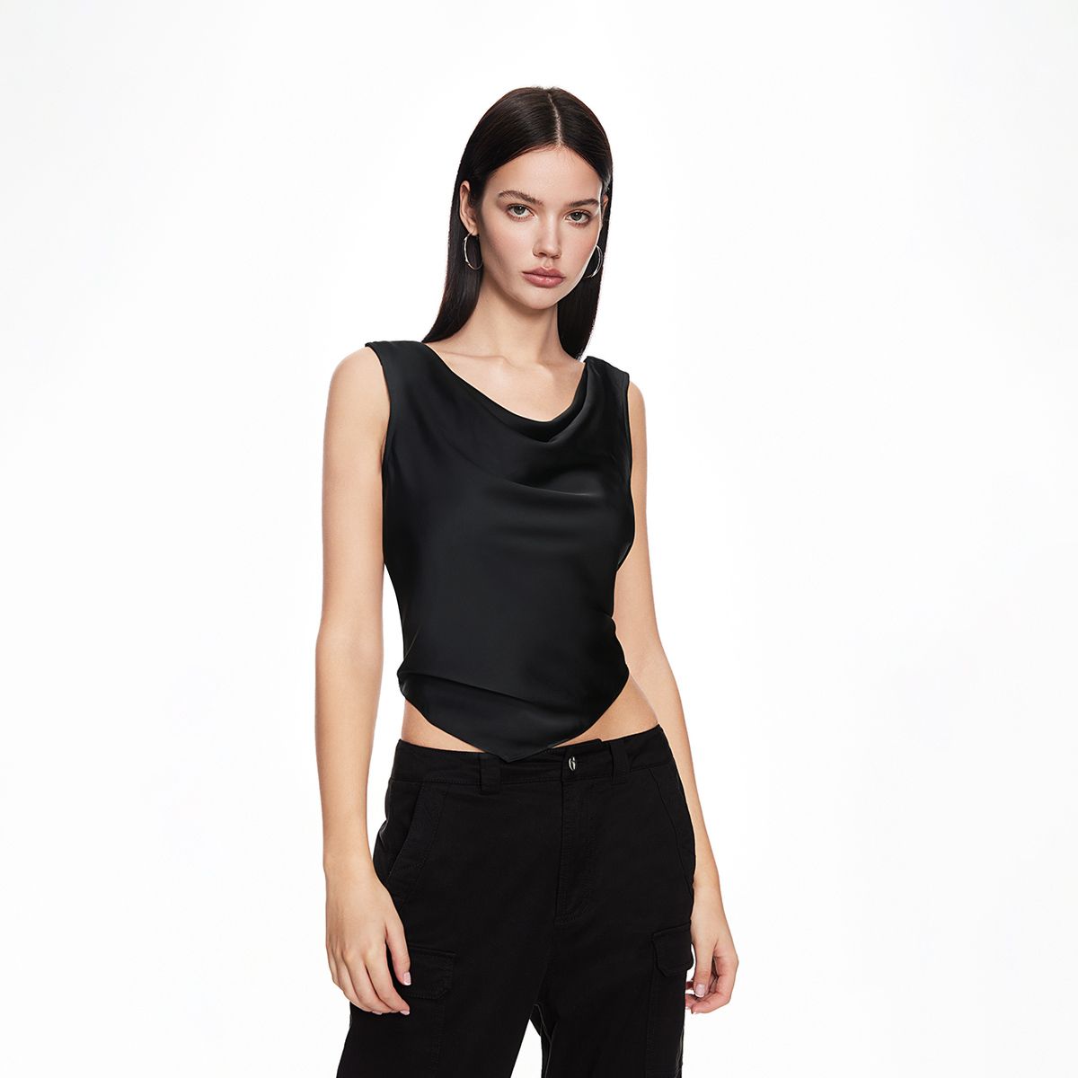 【优雅荡领】夏季印花修身短款吊带雪纺衫女 796826