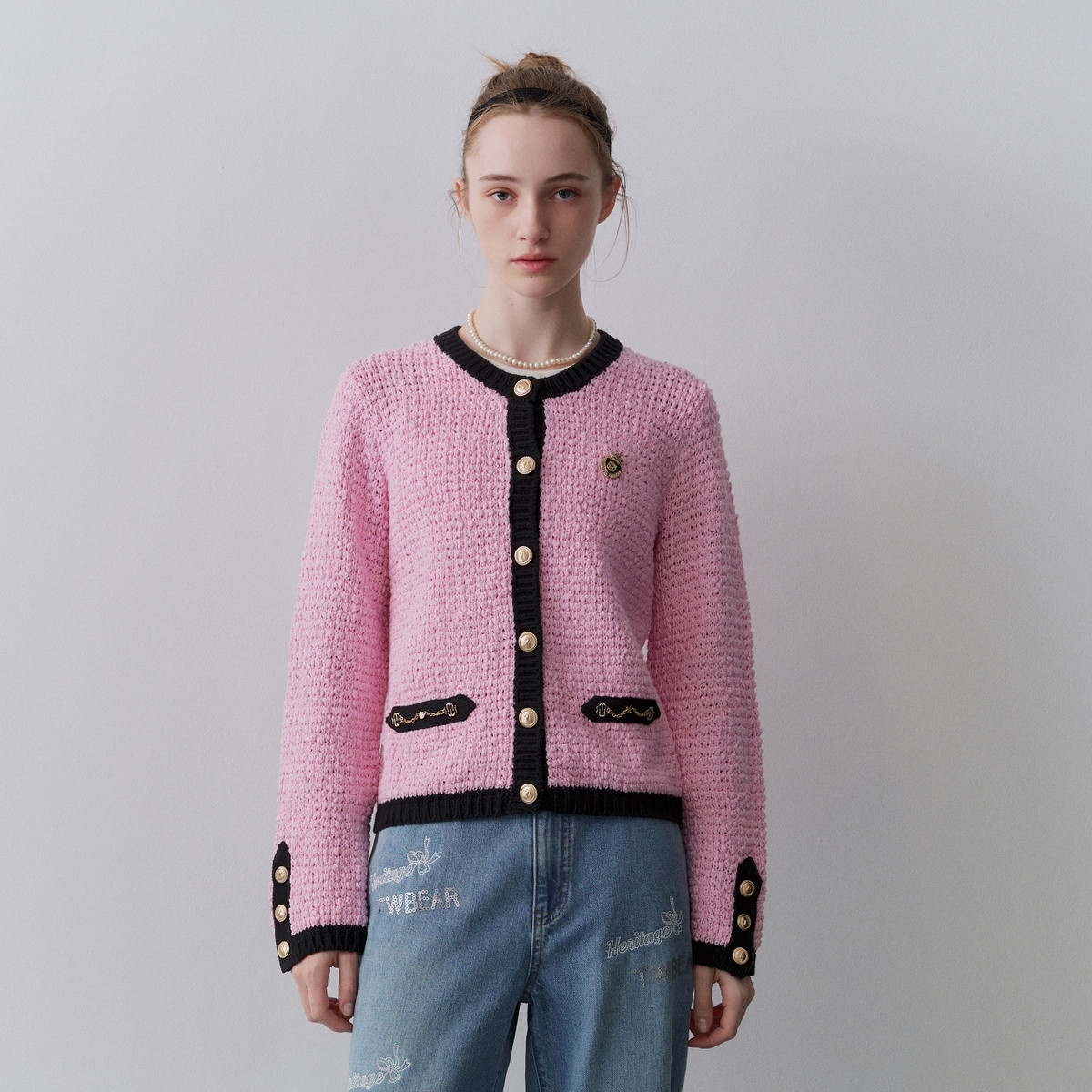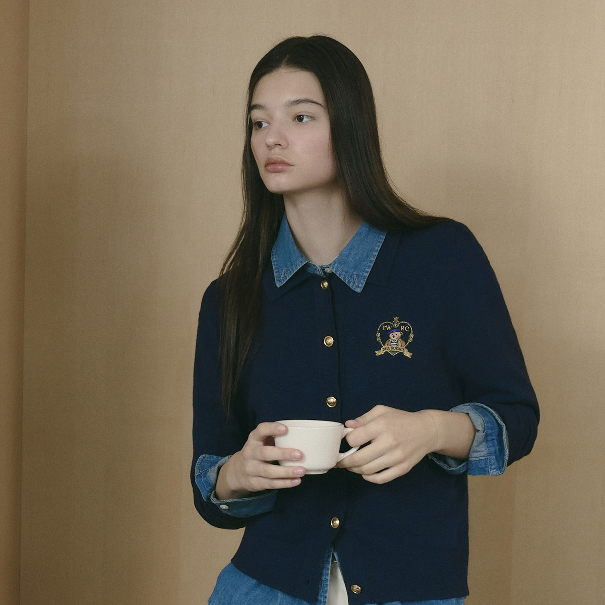 针织开衫女春夏学院风柔感翻领刺绣长袖针织毛衣女 495425